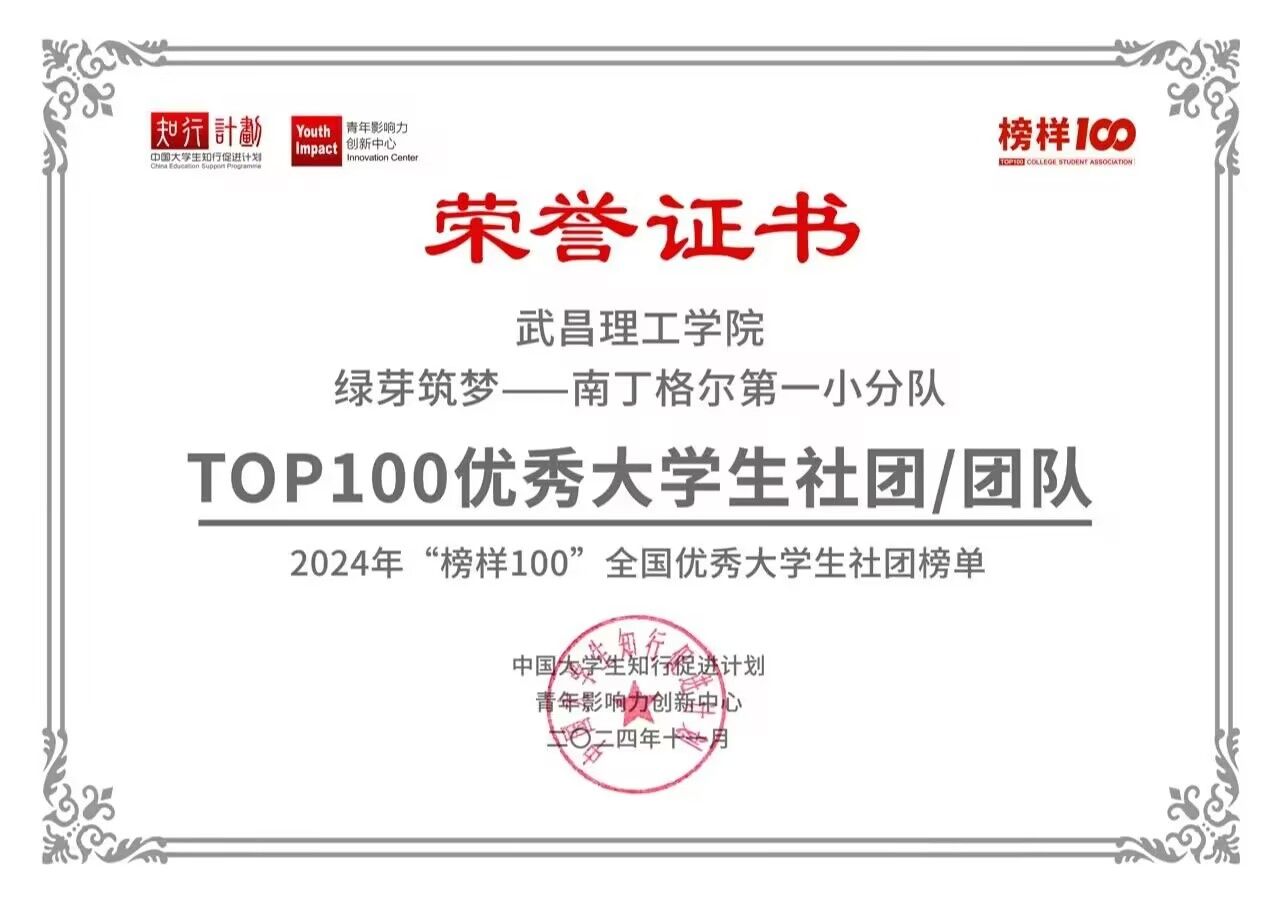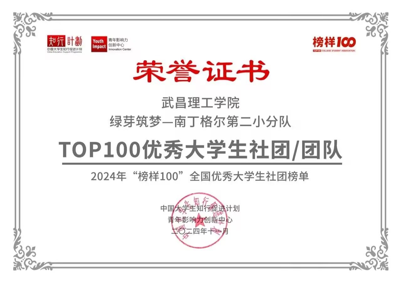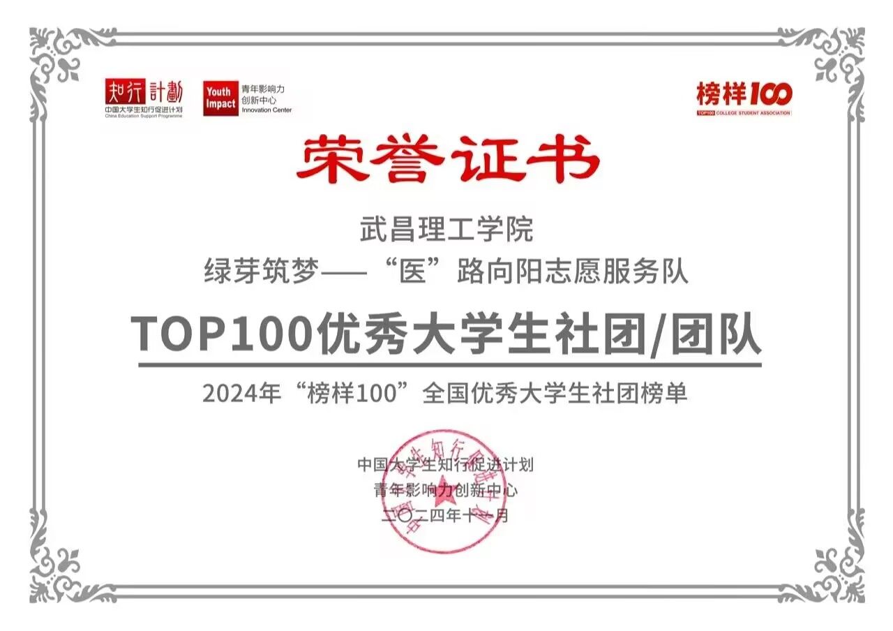 绿芽筑梦——“医”路向阳志愿服务队被评为“TOP100优秀大学生团队”