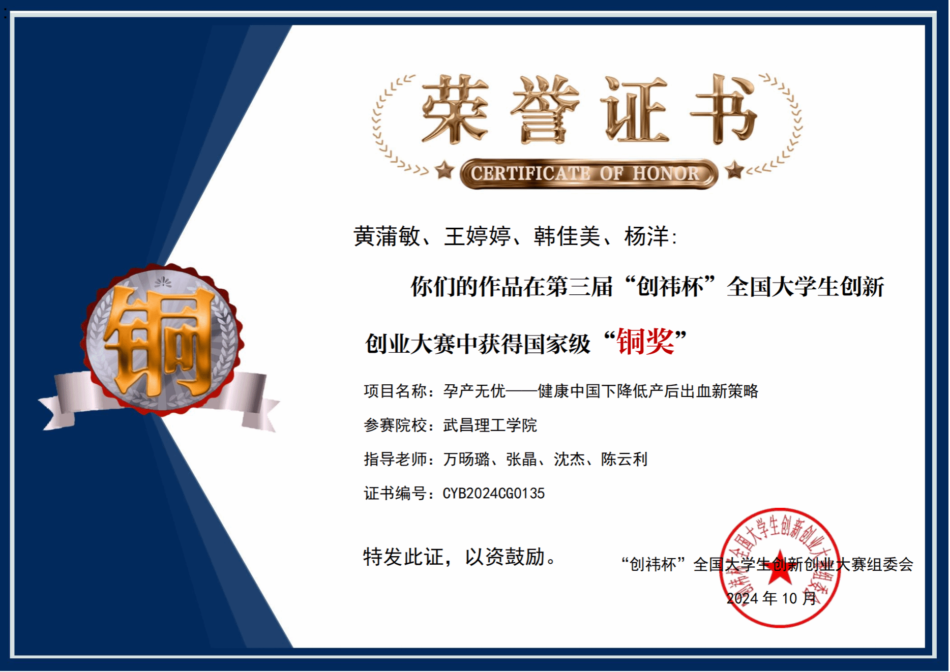 康复治疗学2201班黄浦敏、王婷婷等同学在第三届“创祎杯”获得国家级铜奖