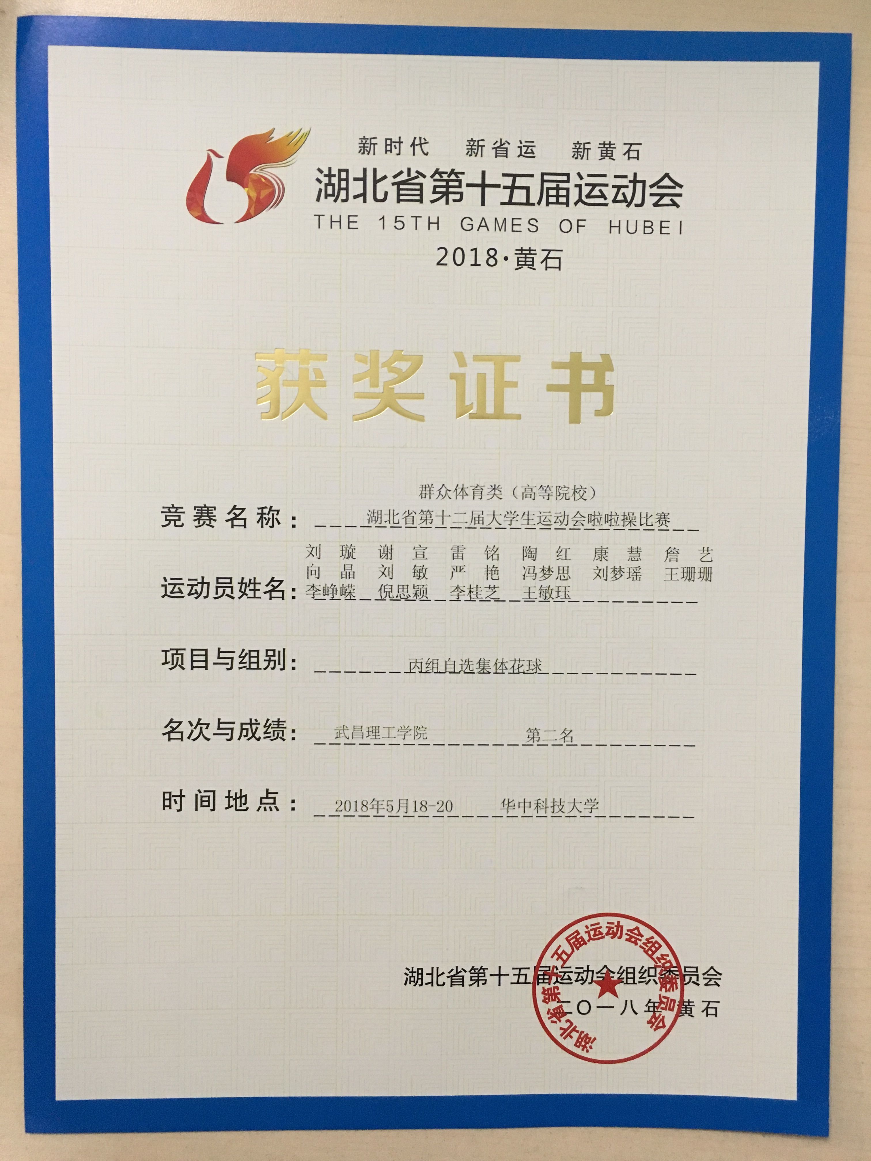啦啦操团队在湖北省第十二届大学生运动会啦啦操比赛中荣获第二名
