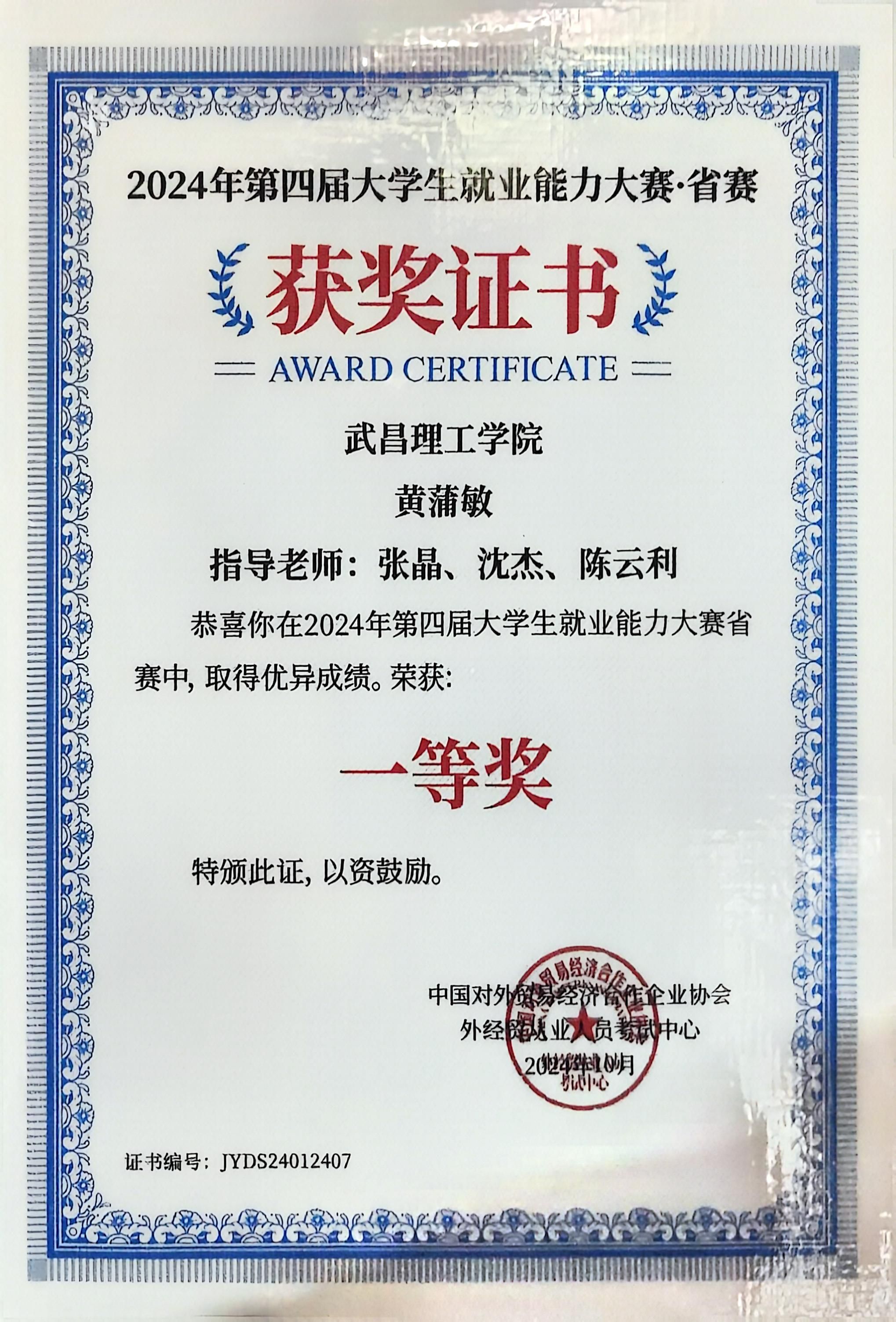 康复治疗学2201班黄浦敏同学在第四届大学生就业能力大赛省赛中荣获一等奖