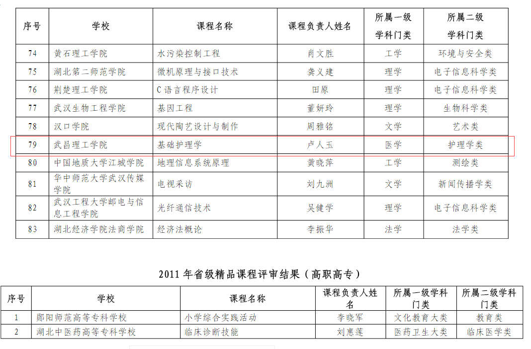 近日,湖北省教育厅发布《关于公布2011年度湖北省高等学校省级精品课程名单的通知》,我院的《基础护理学》课程获批。