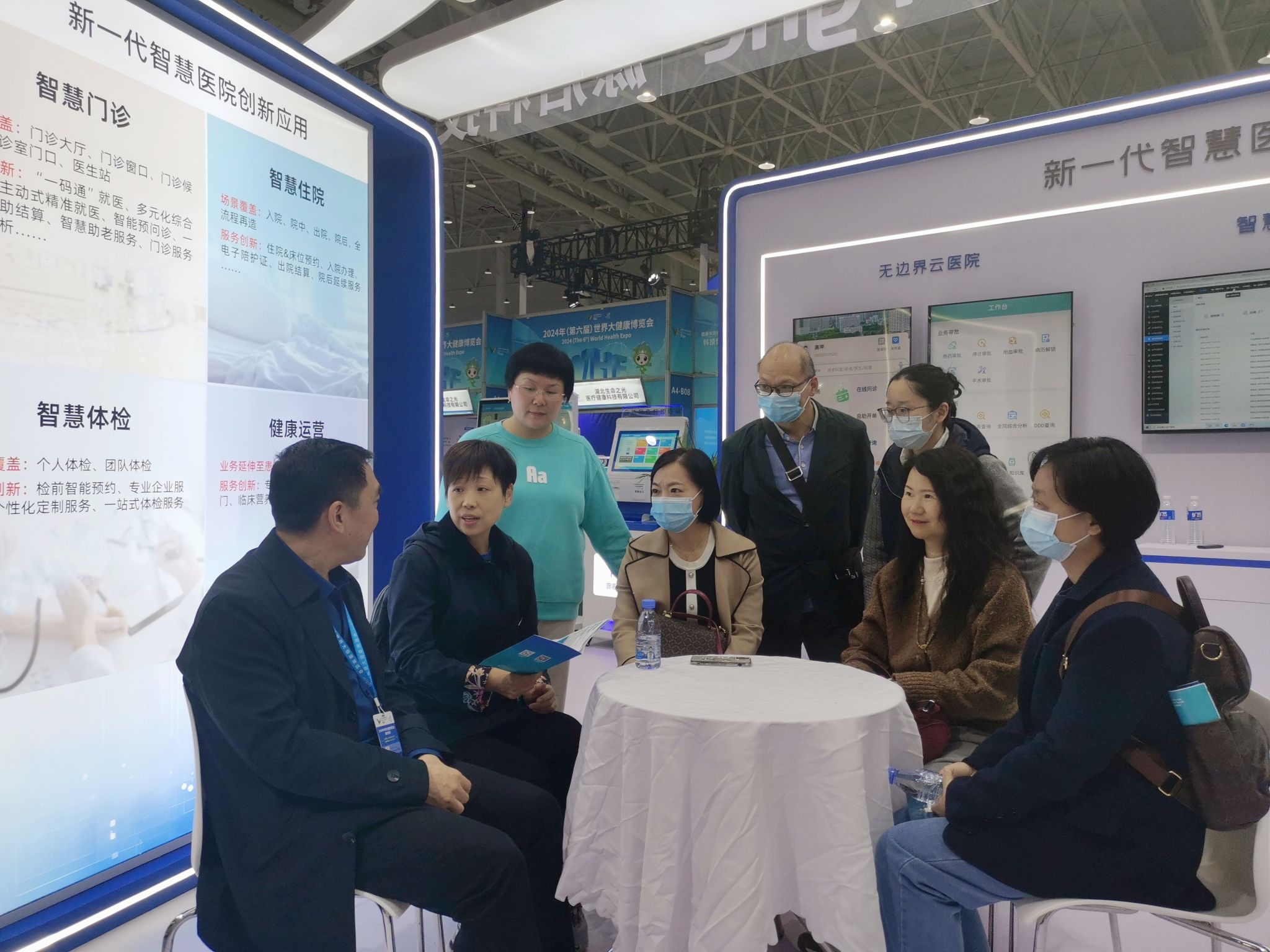 2024(第六届)世界大健康博览会(简称“健博会”)47日在武汉国际博览中心开幕,千余参展商以及一批海内外大健康领域专家、科研人员、企业家代表齐聚武汉,展示新产品、交流新趋势、探讨产业发展。2138CC太阳集团为了进一步拓宽学科专业建设与人工智能融合程度改革的思路,47日下午由2138CC太阳集团院长张红菱带队、党总支书记孙华远、教学副院长童玲、护理学系主任黎湘艳、康复治疗学系主任杨希及学院教师代表一起到健博会现场进行了参观和学习。
