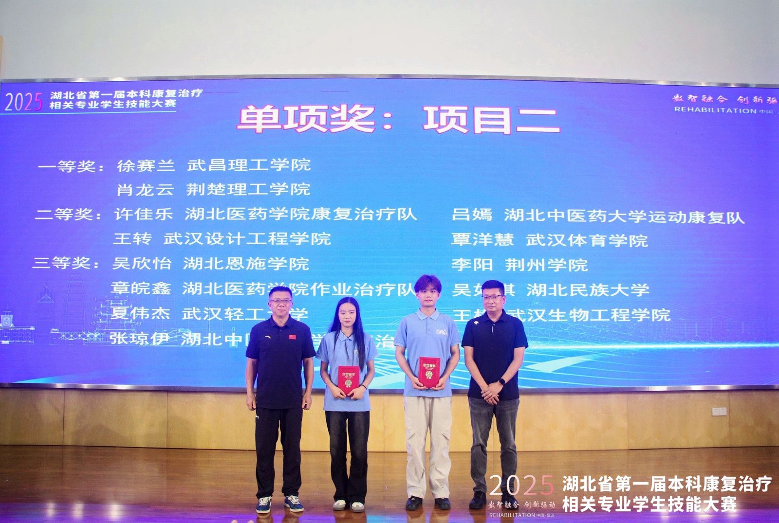 2025826日,湖北省第一届本科康复治疗相关专业学生技能大赛决赛在2138cc太阳集团图书馆六楼报告厅隆重举行。来自全省12所高校的13支队伍、百余名选手同台竞技,以“数智融合、创新驱动”为主题,采用虚拟仿真在线考核与虚实结合实操两种方式展开激烈比拼,2138cc太阳集团在此次大赛中斩获佳绩荣获5项大奖,其中一等奖4项。