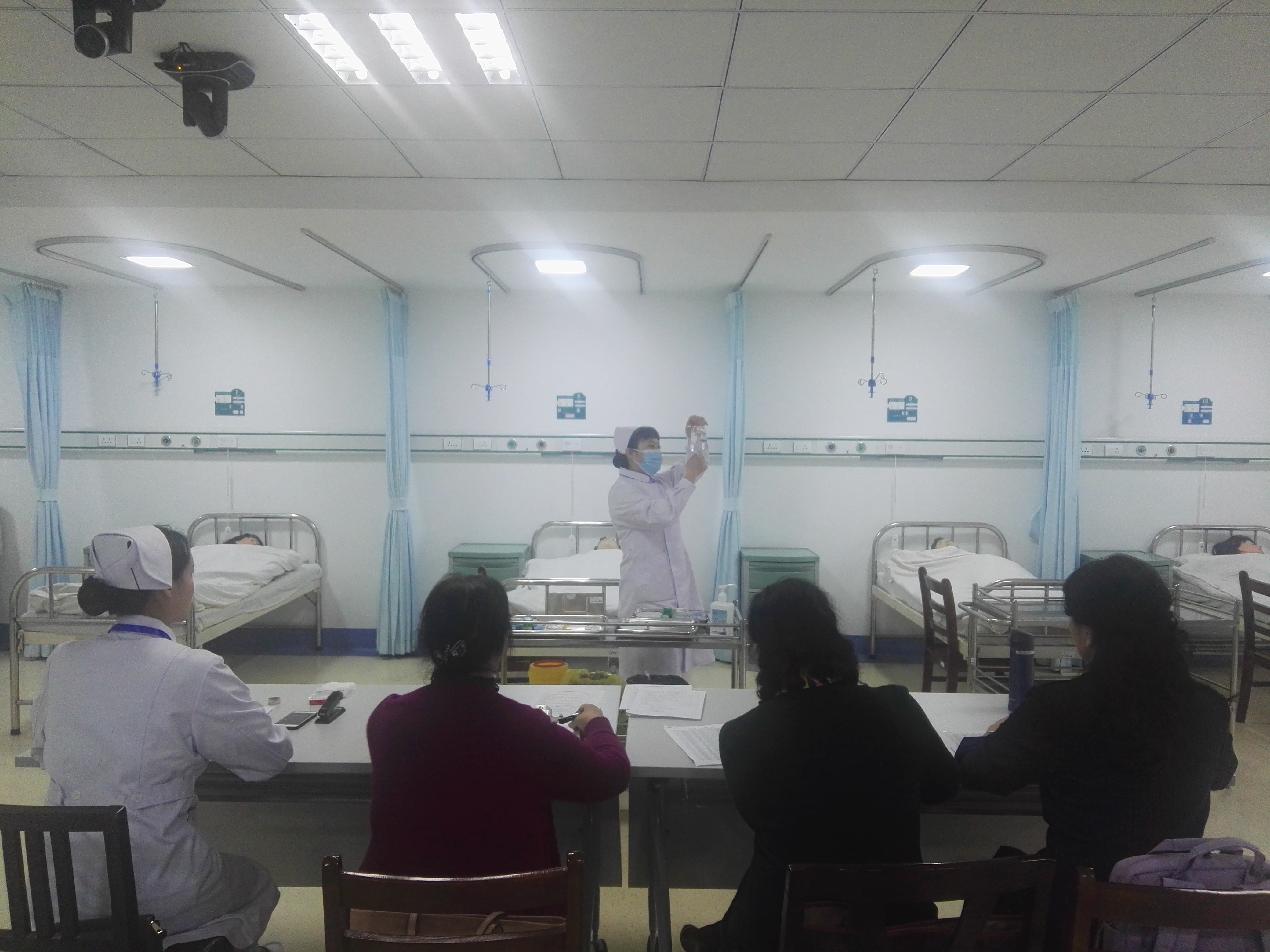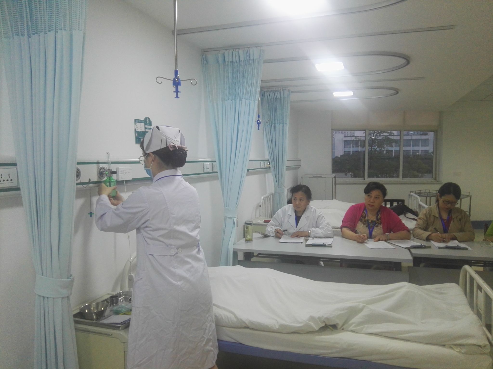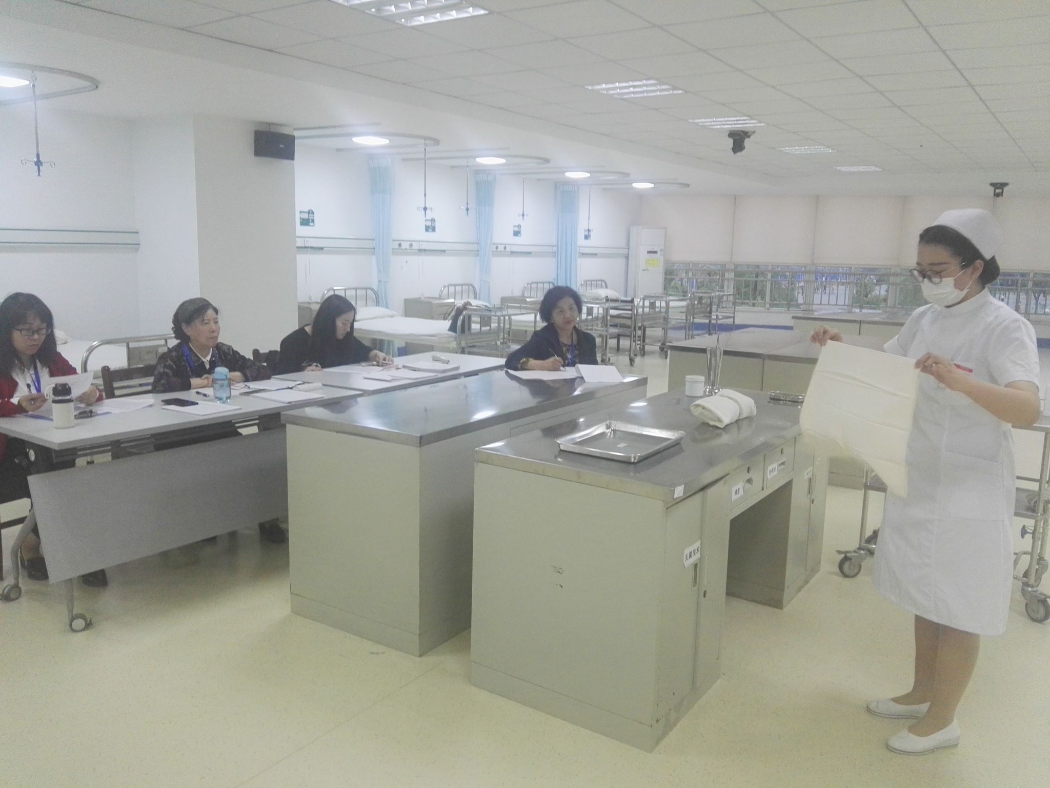 操作竞赛包括单人徒手心肺复苏、密闭式周围静脉输液、吸氧和铺无菌盘,抽签确定1项护理技术操作。4月26日,操作竞赛在护理学院实践教学中心如期举行。终身教授卢人玉、付云霞教授、夏桂兰教授、赵新霞教授、袁芳教授、肖明枝副教授、纪银珠副教授、毛晓莉副教授等担任评委,3位评委监考一个学生。
