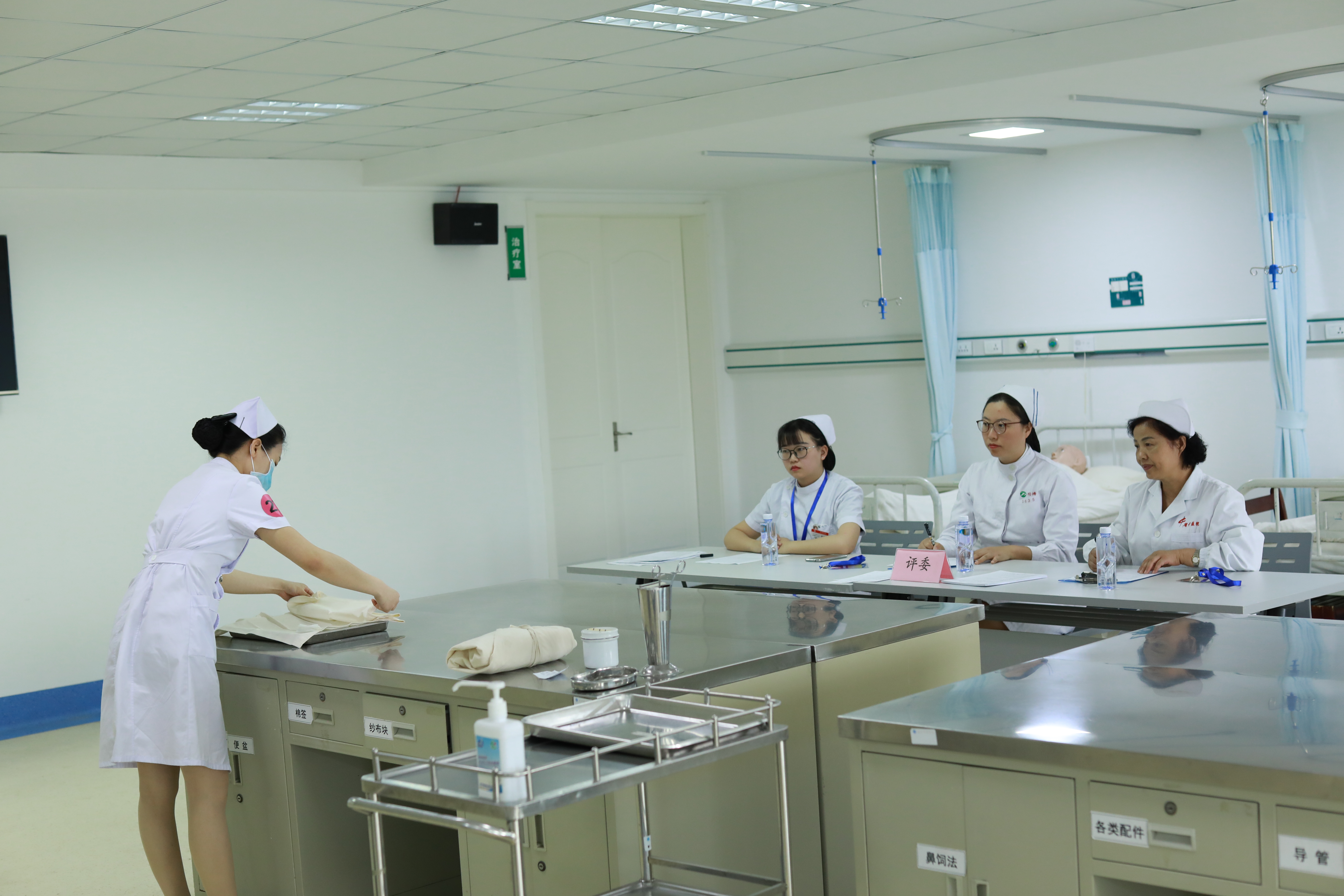 竞赛前,学院召开评委组会议。总评委卢人玉教授首先感谢湖北省护理学会、武汉大学人民医院、同济医院和协和医院对我院操作竞赛的大力支持,接着强调了评分注意事项。范湘鸿教授对评分细则和操作规范进行了补充说明。