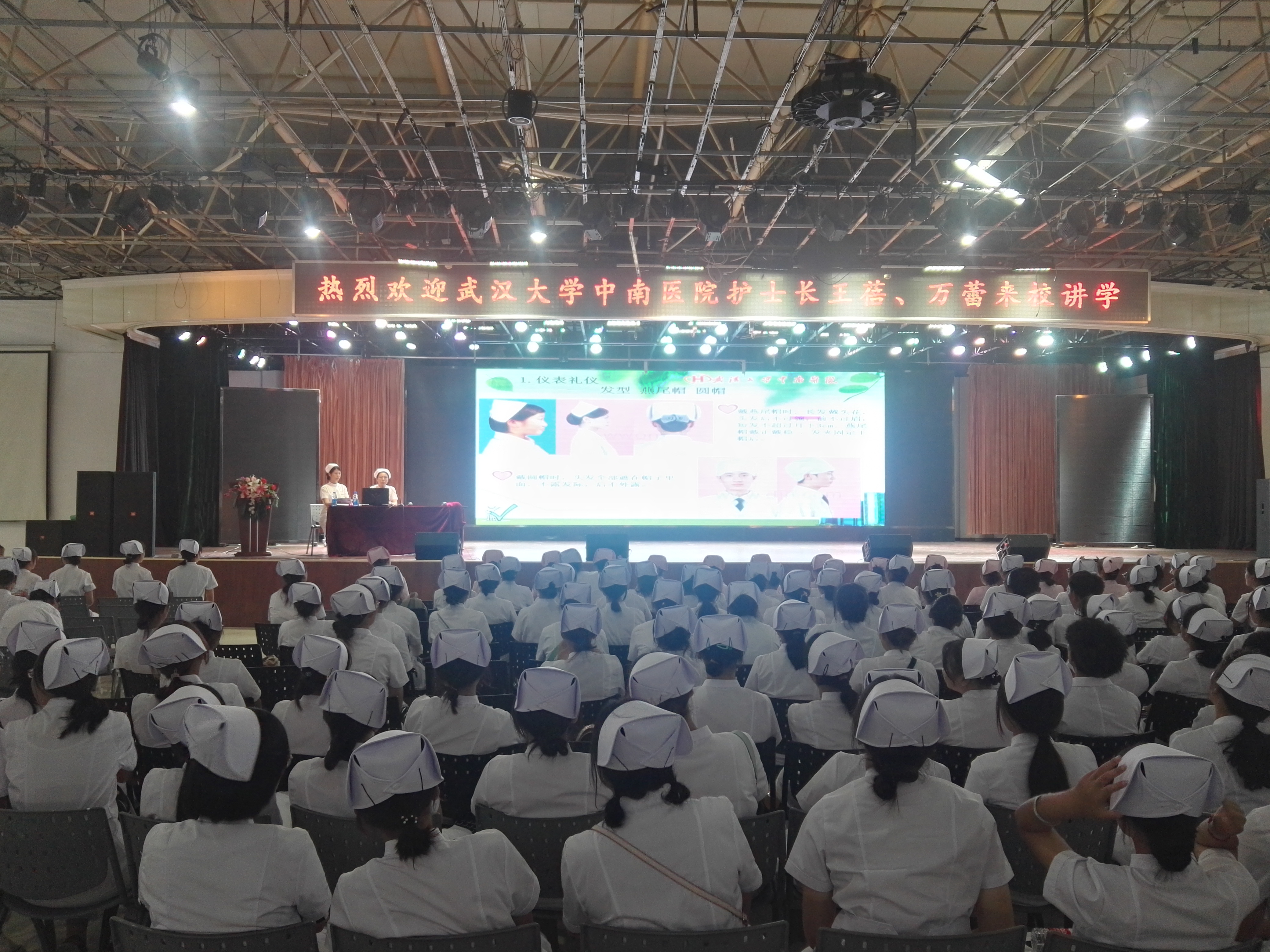 [通讯员:杨宏英]为了提高新生对护理美的认知,培养学生对护理专业的职业自豪感,9月24日下午,护理学院邀请武汉大学中南医院王蓓护士长和万蕾护士长来校给2019级新生作了护理礼仪的专题培训。护理学院副院长陈红梅主持,实习管理科长杨宏英、素质导师和2019级全体新生参加。