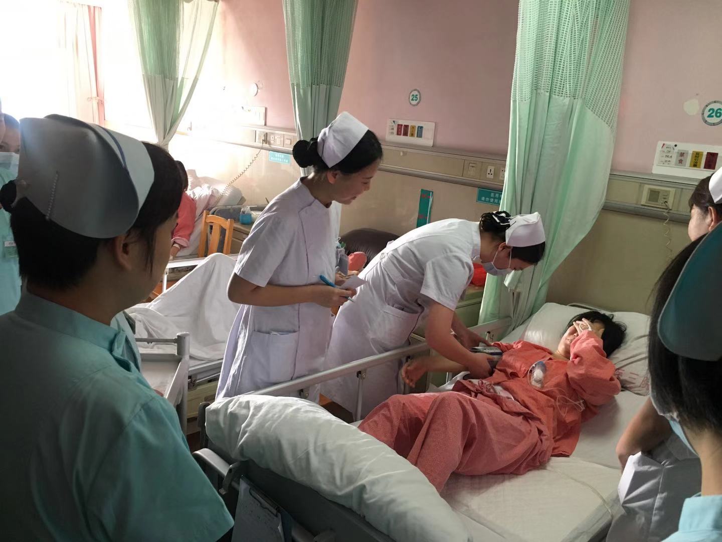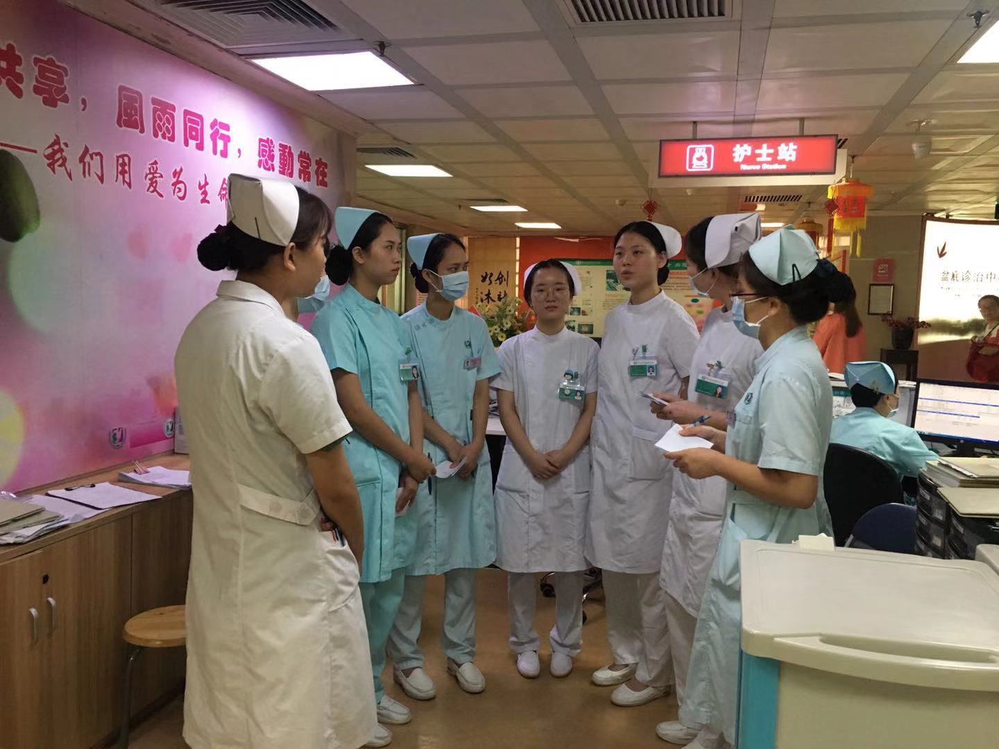 广州医科大学附属第三医院每个月组织以护理实习生为主导的护理查房,以提高实习生护理综合能力、提高发现问题和解决问题能力。我校10名实习生,积极参与护理查房活动,七月组织急性心肌梗死病人的护理查房,八月份组织子宫肌瘤护理查房,九月份组织卵巢肿瘤术后的护理查房。每一次的护理查房,以3-4人为一组,共同讨论知识回顾、病情介绍、护理诊断及措施、健康宣教等具体知识点,具体任务分工协作,齐心协力向全体实习生汇报。学生汇报结束后,护理部老师指出查房中存在的不足之处,如“护理诊断应与病人实际情况相结合、健康宣教应具体”等,加深了实习生对理论知识应用于具体实践的理解。