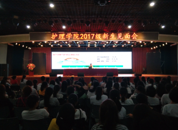 (通讯员 车毓颖)金秋九月,丹桂飘香。9月19日下午,护理学院在大学生活动中心举行“2017级新生见面会”。护理学院院长杨和平、常务副书记盛蕾、教学副院长李强和护理系主任张志霞博士参会。会议由常务副书记盛蕾主持。