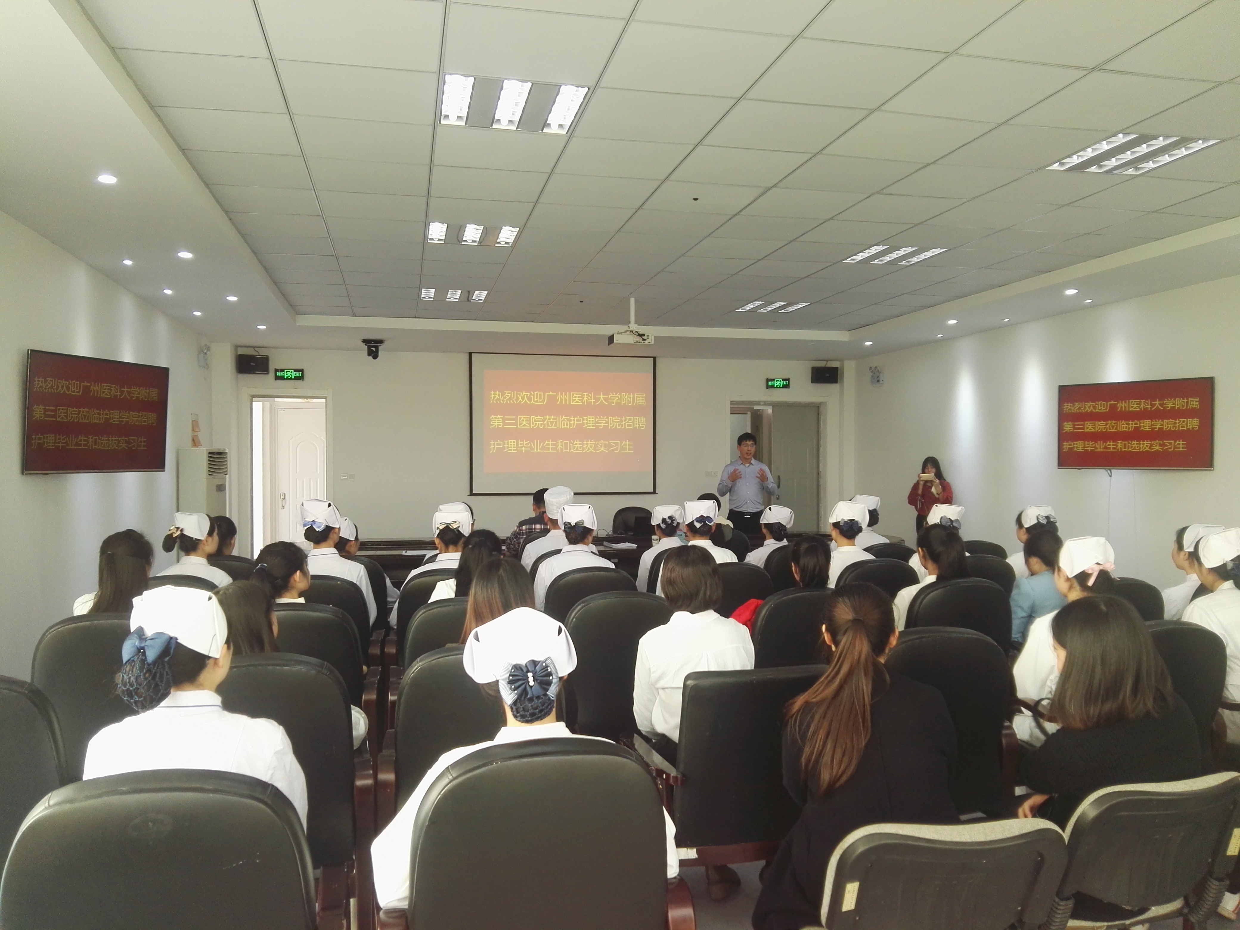 广州医科大学附属第三医院今年在武汉举办两场小型招聘会,一场在武汉大学,一场在我们学院。学院推荐20余名优秀毕业生参加了招聘、20名学生参加了实习生选拔面试。招聘会前,教学副院长李强给学生讲解面试技巧,实习科长杨宏英老师给学生讲着装要求,素质导师给学生指导修改简历。面试时,同学们精神饱满,沉着冷静,自信的进行自我介绍,医院老师全方位的了解每位同学的学习、生活、家庭背景、对护理专业忠诚度等后,对学生的综合素质表示满意。应聘结果将随后公布。