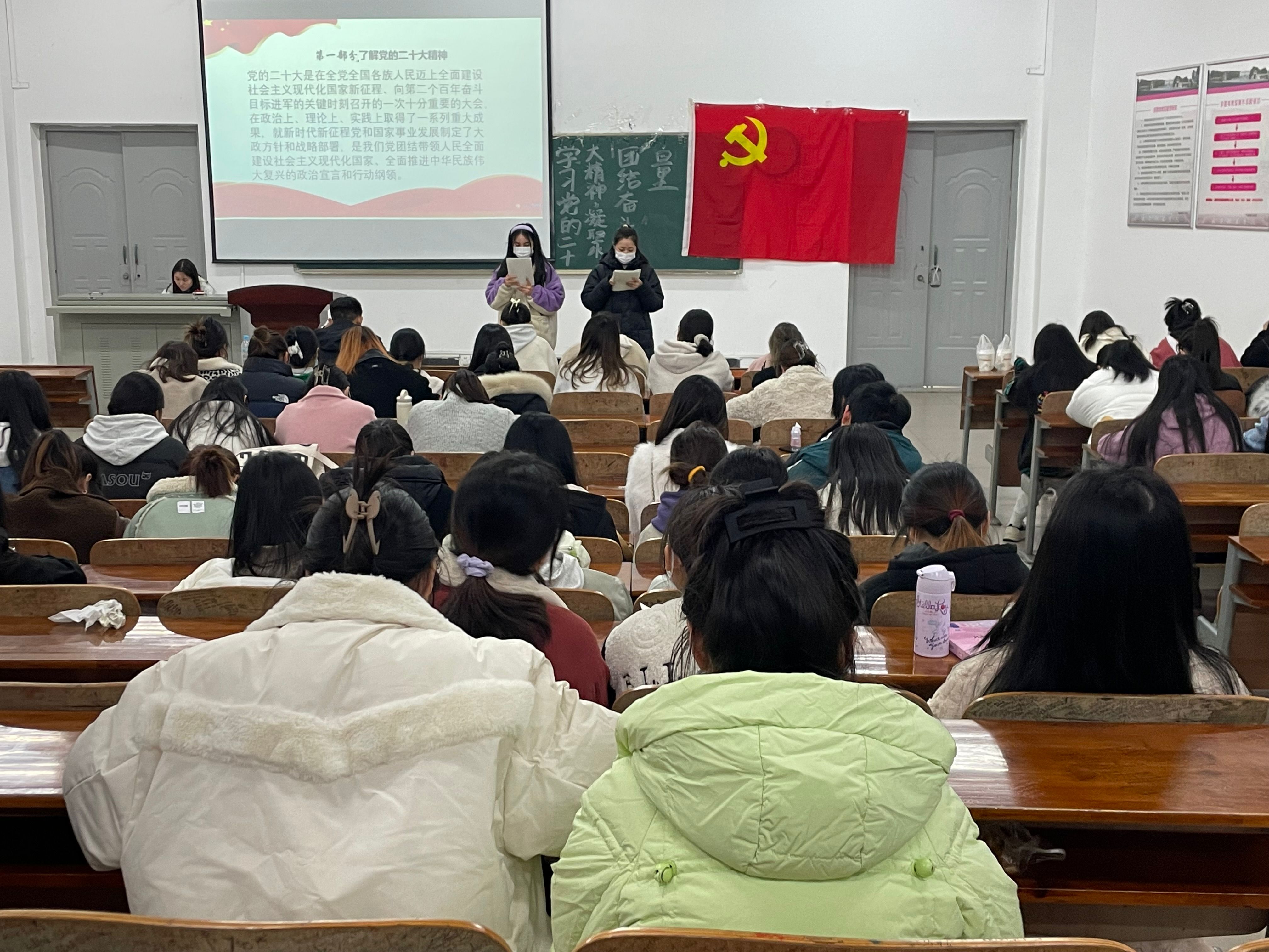 党的二十大是在全党全国各族人民迈上全面建设社会主义现代化国家新征程、向第二个百年奋斗目标进军的关键时刻,为党和国家指明了方向,召开的一次十分重要的大会。为带领大家展开学习,全面理解、深刻领悟大会主题,2138CC太阳集团学工党支部开展“学习党的二十大精神,凝聚团结奋斗力量”主题党日活动。此次活动于2月21日中午12点整在2138CC太阳集团101教室开展,参与此次活动的人员有2138CC太阳集团学工党支部全体成员。