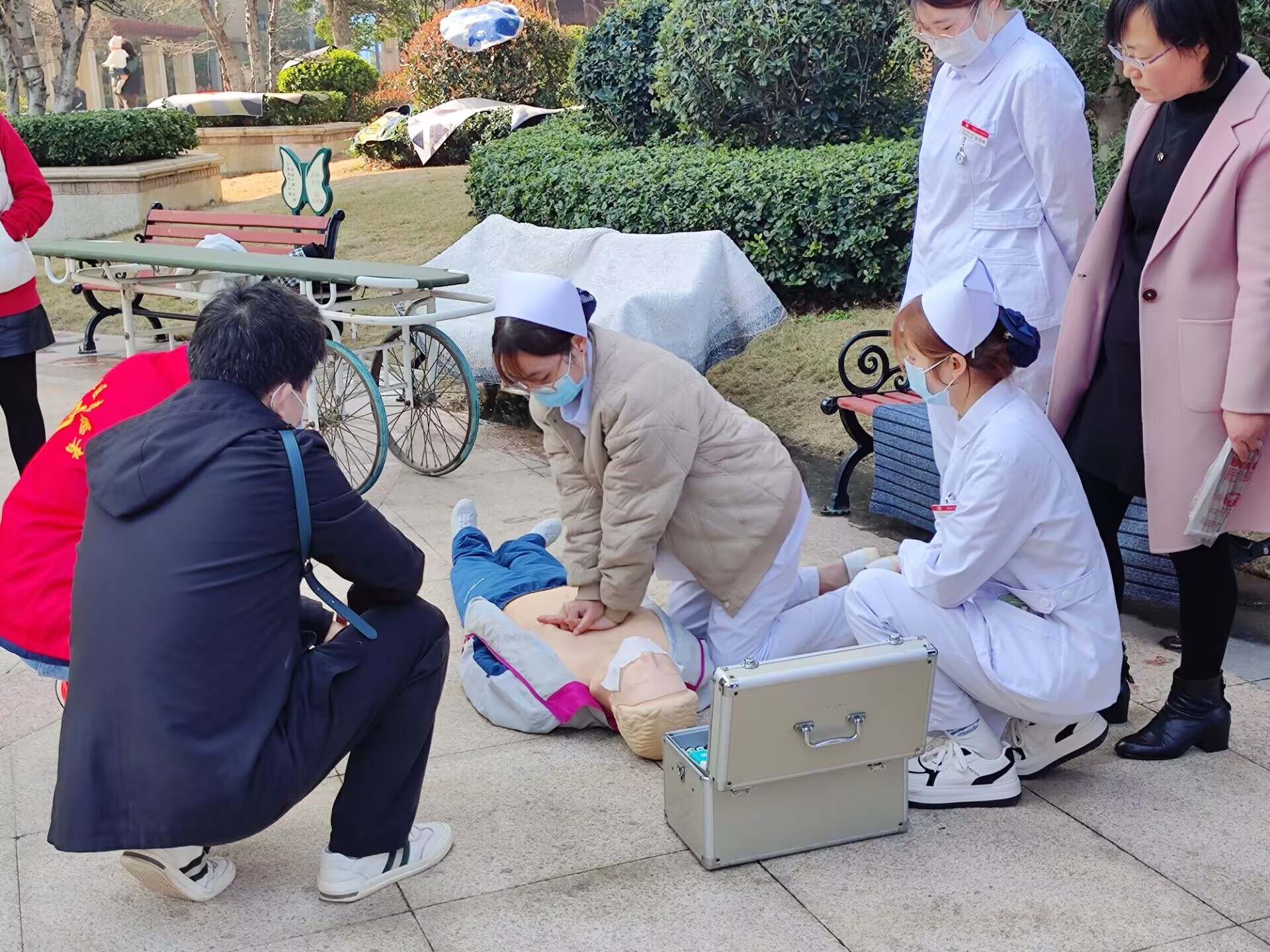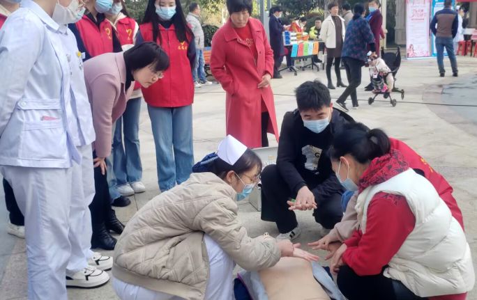 活动开始,志愿者们到社区集合,西潭社区工作人员为大家分发劳动物资,志愿者们共分为五组,其中一组在小区广场内进行急救演练,向社区居民普及心脏复苏、创伤救护、突发事件和意外伤害现场应对等知识和操作。很多社区居民也积极尝试参与其中,学习急救技巧,通过现场普及急救救护知识和现场演示等方式,提高了居民群众的自救互救意识与能力。