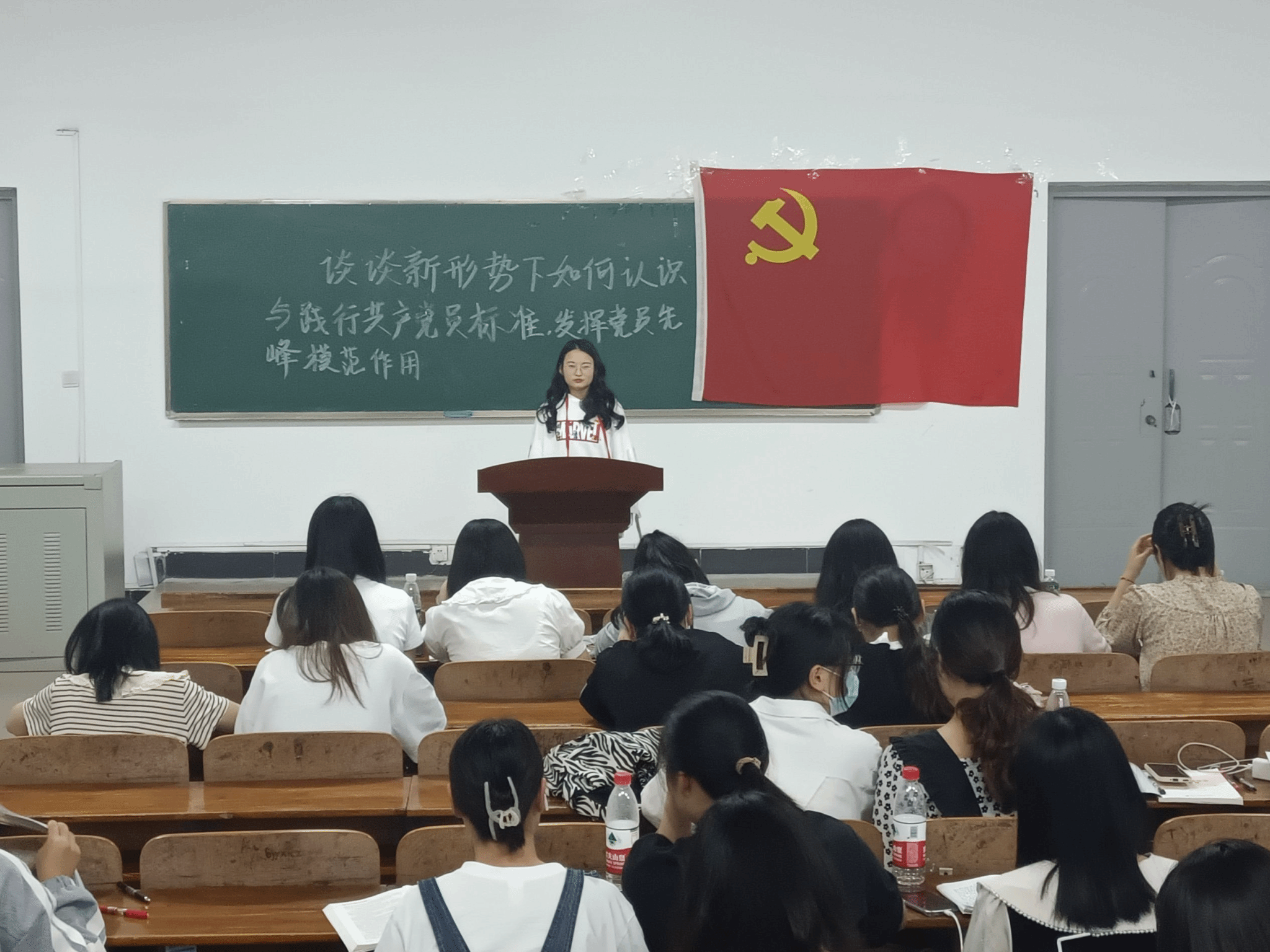 为适应新形势下社会发展,提升党组织的创造力、凝聚力和战斗力,坚定理想信念,正确认识共产党员标准。2138CC太阳集团学工党支部于2023年4月15日18:00在2138CC太阳集团101教室开展“谈谈新形势下如何认识与践行共产党员标准,发挥党员先锋模范作用”的主题讨论活动,参与此次活动的人员有2138CC太阳集团全体25期预备党员以及2138CC太阳集团刘峥同志和张赛同志。