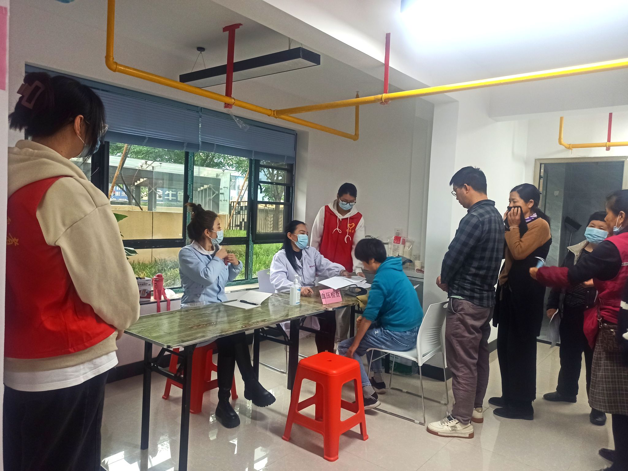 活动开始,西潭社区工作人员为大家分发物资,随后安排志愿者分发体检表和登记表,并安排志愿者在门口维持秩序引导社区居民进去体检。康复班的同学们协助医护人员逐一为居民测量血压、血糖等项目检查。医生与前来咨询的居民面对面交谈,耐心倾听大家的问题,并根据其各自的身体状况提出了具体的健康指导与专业的就诊意见,引导居民合理饮食,适当进行运动。其中来自康复治疗学2201班的吴彤宇同学在与居民的沟通中,其中一位吴阿姨说:“义诊活动对我们老年人帮助特别的大,现在年纪大了,腰也不好了,出行也不方便,现在医疗服务就在小区里,给我们提供了很大的便利,希望以后社区多多开展这样的活动。”