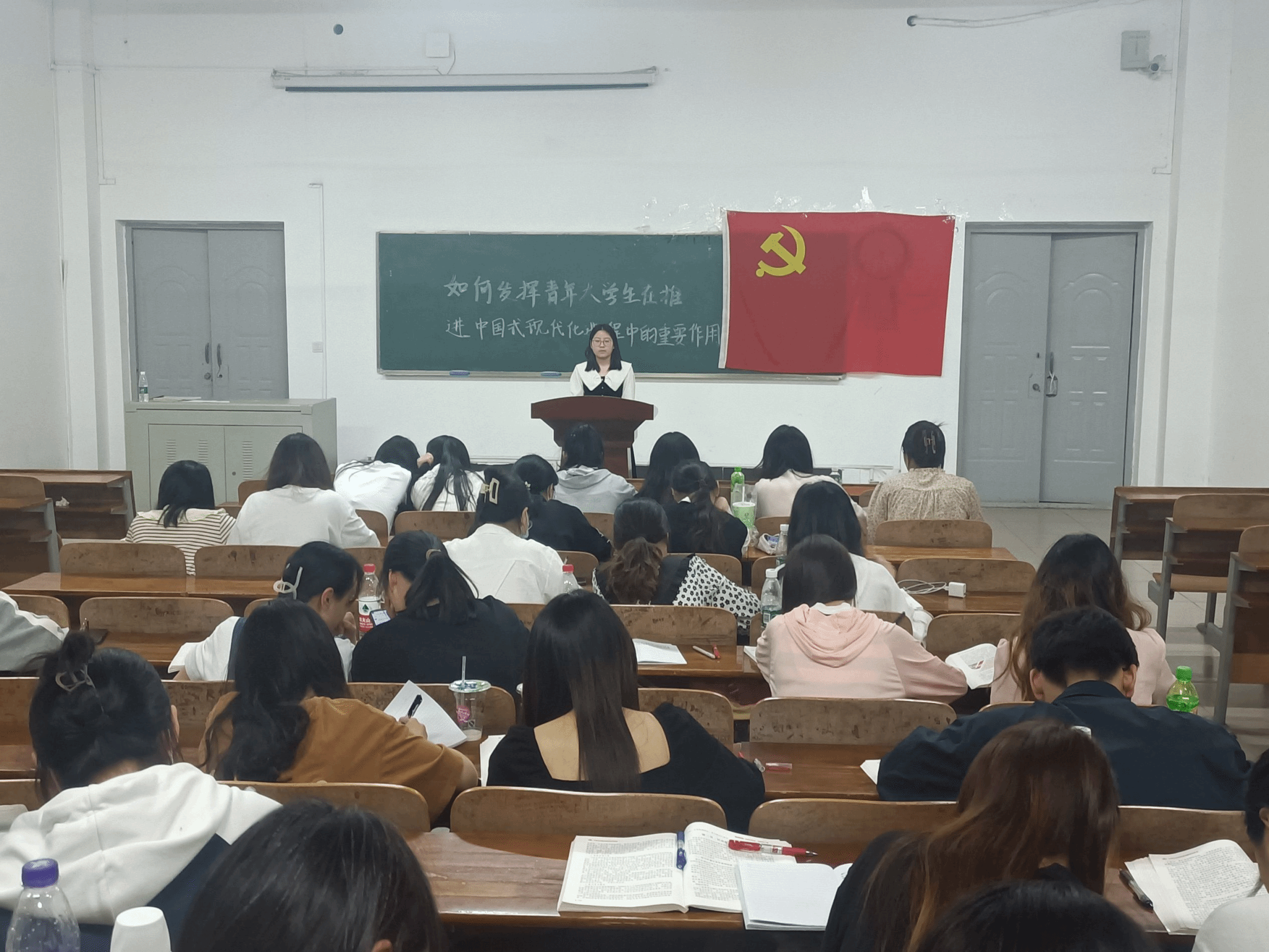 为坚定理想信念,加强自身修养和党性锻炼,2138CC太阳集团学工党支部于2023年4月16日14:00在2138CC太阳集团101教室开展“如何发挥青年大学生在推进中国式现代化进程中的重要作用”的主题讨论活动,参与此次活动的人员有2138CC太阳集团全体25期预备党员以及2138CC太阳集团刘峥同志和张赛同志。