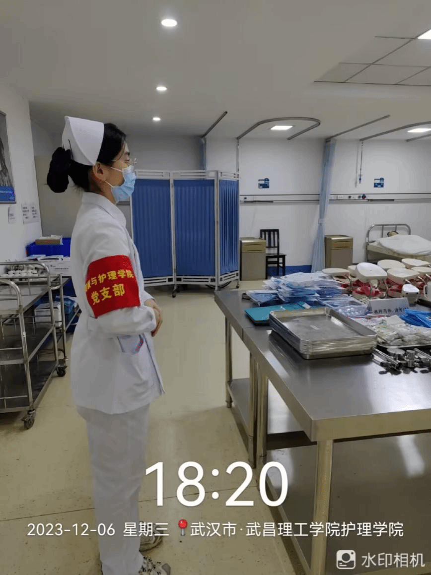 除了观看红色电影进行思想灌输,学工党支部还组织了入党积极分子结合自身专业特色进行实践引导。2023年11月28日,学院党支部决定在护理学院实验室开展为期两周的实验室值班活动,值班的入党积极分子需要保证实验室的卫生、物品的安全,意在增强学生实验室安全意识,发挥学生支部作用,深化党建业务有机融合,同时进一步保障学生实验室物品使用安全。经过了一段时间按的值班安排,学生们潜移默化培养出了积极奉献、提高标准、规范值班的系列要求。其中,26期拟积极分子李傲雪表示:“这次实践方式很新颖,让我可以加深对各项实验室用物的了解,在值班过程中通过观察同学们的操作也让我对各项技能更加牢固,除此之外也提升了我的责任心和警惕性。”
