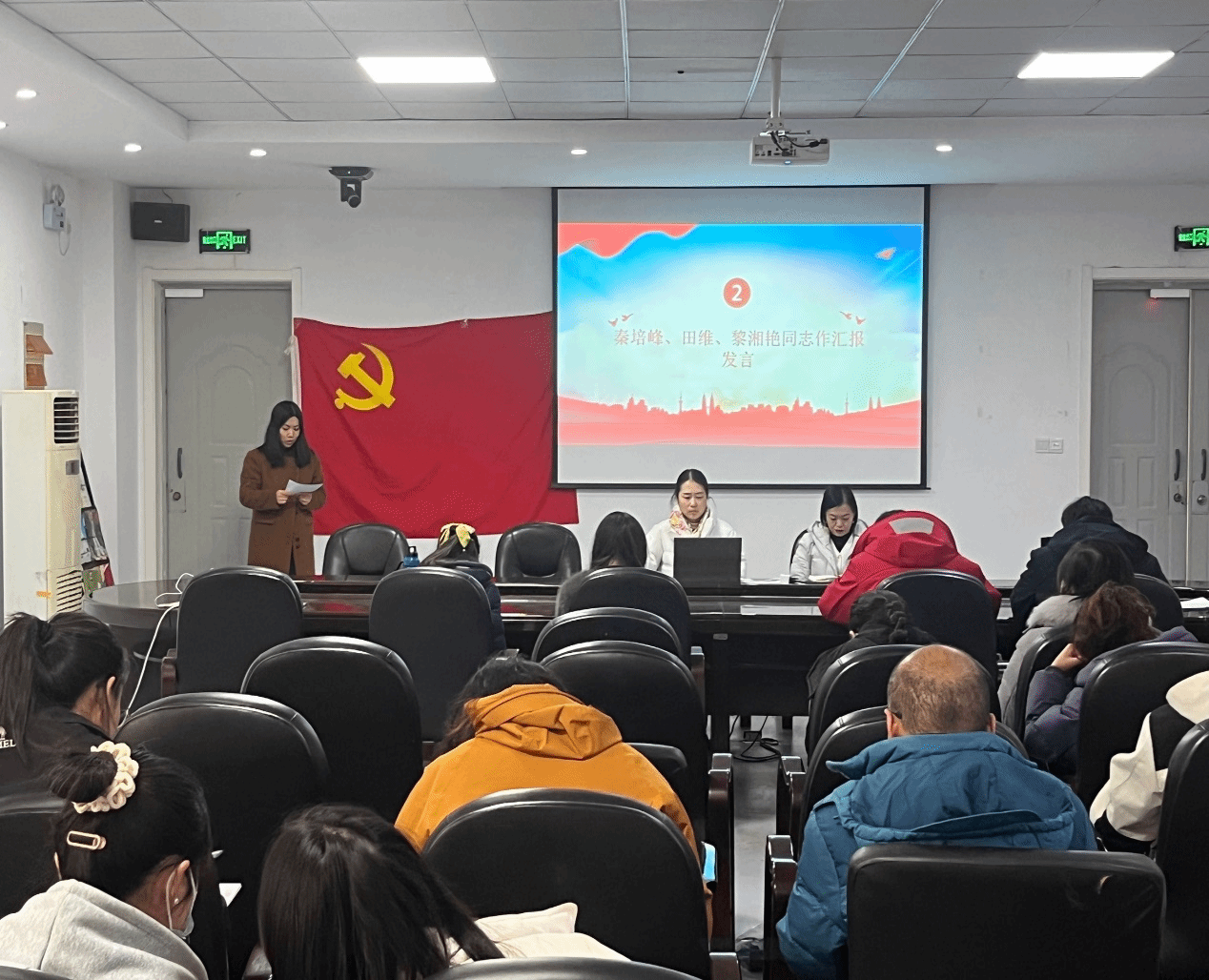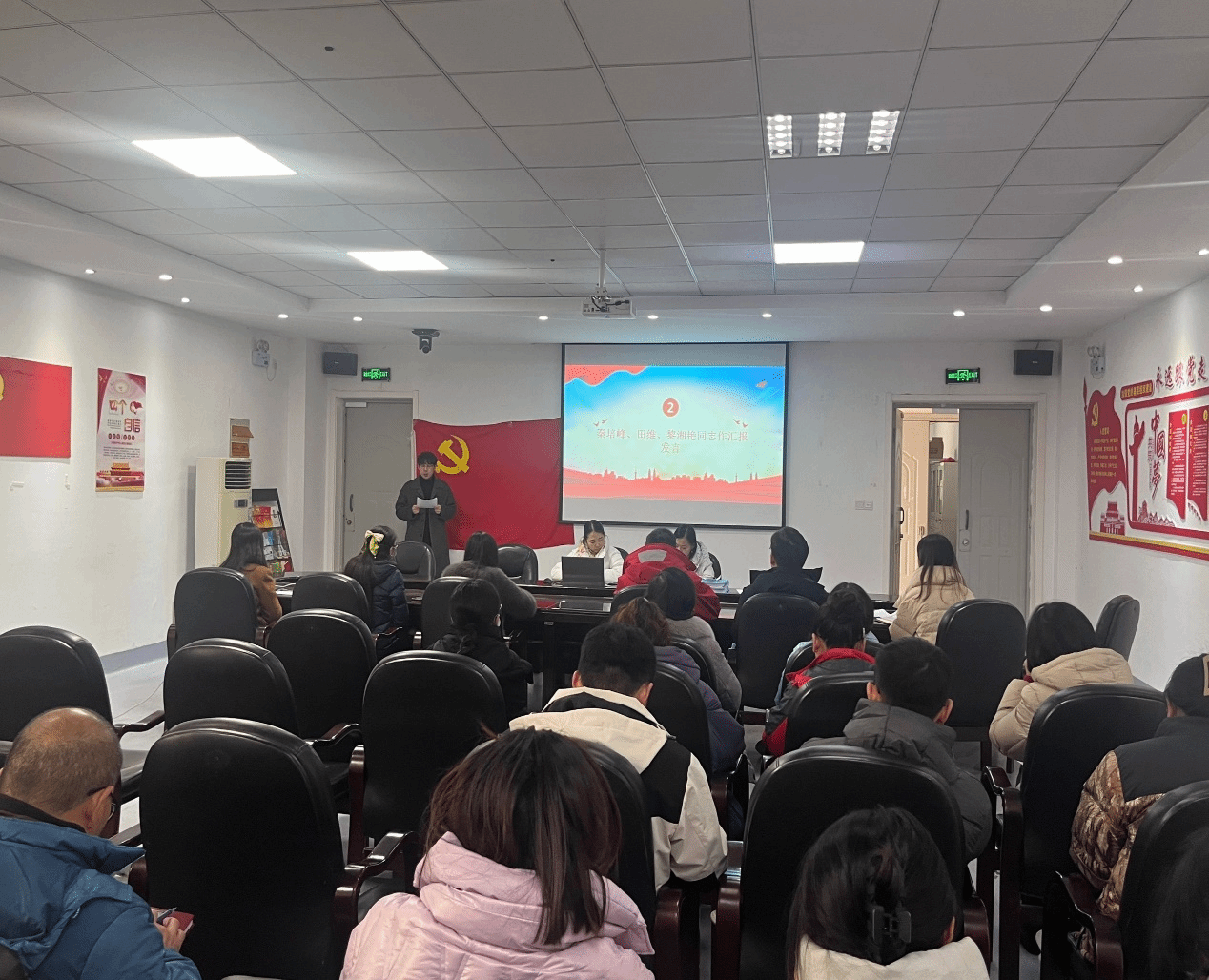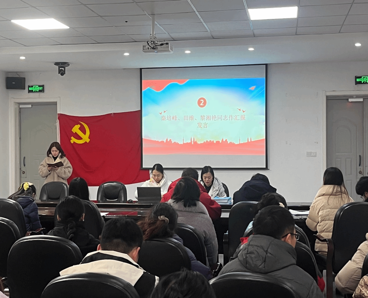 此次活动由教工党支部书记曾丹同志主持活动伊始,大会开始分别由秦培峰、田维、黎湘艳三位发展对象向大会作个人思想汇报。他们分别汇报了自己成为入党积极分子一年来的情况,汇报内容包括自己的入党动机、对党的认识、为向党组织靠拢而做出的努力,自身的进步及不足等。三名入党积极分子均能充分认识到入党的不易和教工党支部培养的不易,并表示要珍惜这次入党的机会,积极向党组织靠拢,为学院、学校的教学工作贡献自己的一份力量。