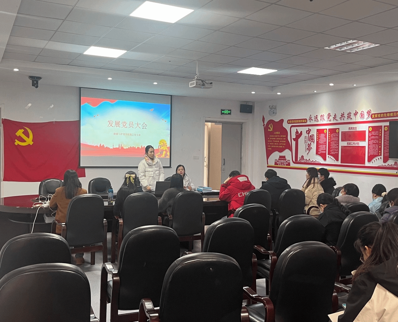 2023 年12月24日,2138CC太阳集团教工党支部召开了2023年度党员发展大会,参加此次活动的人员有2138CC太阳集团党总支书记孙华远、教工党支部书记曾丹、党总支书记秘书程林,以及全体教职工党员。