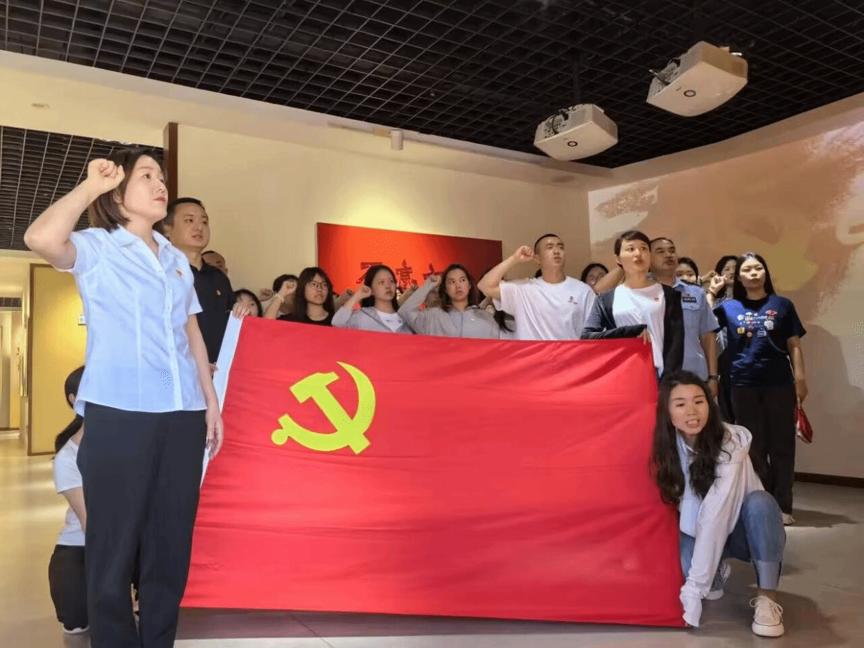 据悉,此次主题党日教育活动由2138CC太阳集团学生党支部13名党员同志和西谭社区党总支14名党员同志共同开展。活动伊始,全体党员同志乘坐大巴车抵达武汉江夏天子山爱国主义教育基地。进入基地,全体党员在西谭社区党总支书记舒东林的带领下重温入党誓词。右手握拳,全身挺直,大声宣誓:“我志愿加入中国共产党......”宣誓铿锵有力,声声誓言回荡在大堂内。誓词的句句警示与忠告将永远烙印在党员的心中。