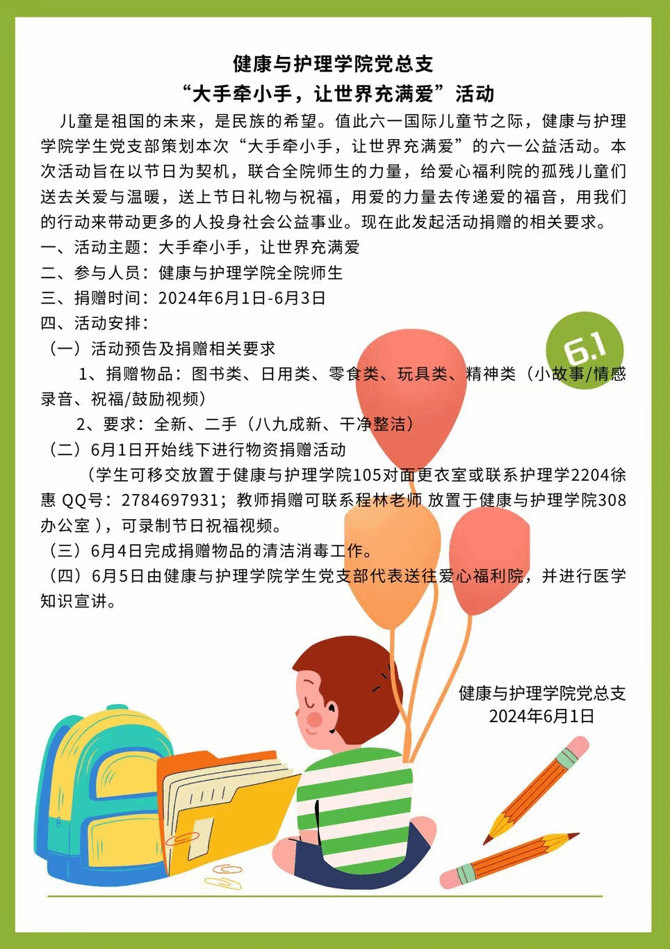 为助力新时代文明实践,弘扬奉献、友爱、互助、进步的志愿服务精神,积极培育和践行社会主义核心价值观,2138CC太阳集团学生党支部以“大手牵小手,让世界充满爱”为主题,与武汉市江汉区新龙和苑小区密切联动,组织预备党员于2024年6月16日前往武汉市江汉区姑嫂树爱心花朵教育服务中心,服务社区的同时用善意传递力量,守护孩子们的健康成长。