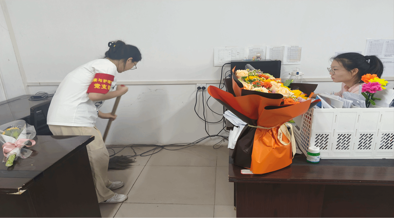 本次活动由何可同志和谭垭同学主持活动伊始,同学们在确认好活动流程后在谭垭同学的带领下进入了教室办公室,为老师送上了最衷心的祝福与感激。同学们在和老师们简单的问好后便开始各司其职,对办公室进行全方位打扫,为老师们收拾出干净整洁的办公环境,营造舒适的工作氛围。