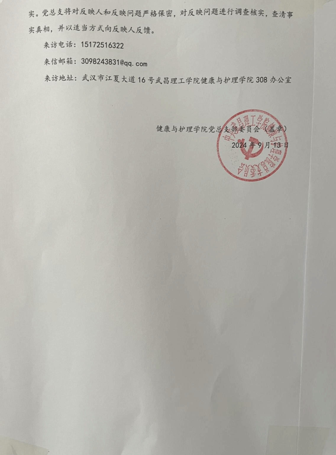 公示期间,特殊时期,广大党员、群众监督可采取打电话、邮箱或QQ、微信的方式,向护理学院党总支反映情况。反映情况要求实事求是,提倡实名,以便于调查核实。党总支将对反映人和反映问题严格保密,对反映问题进行调查核实,清事实真相,并以适当方式向反映人反馈。