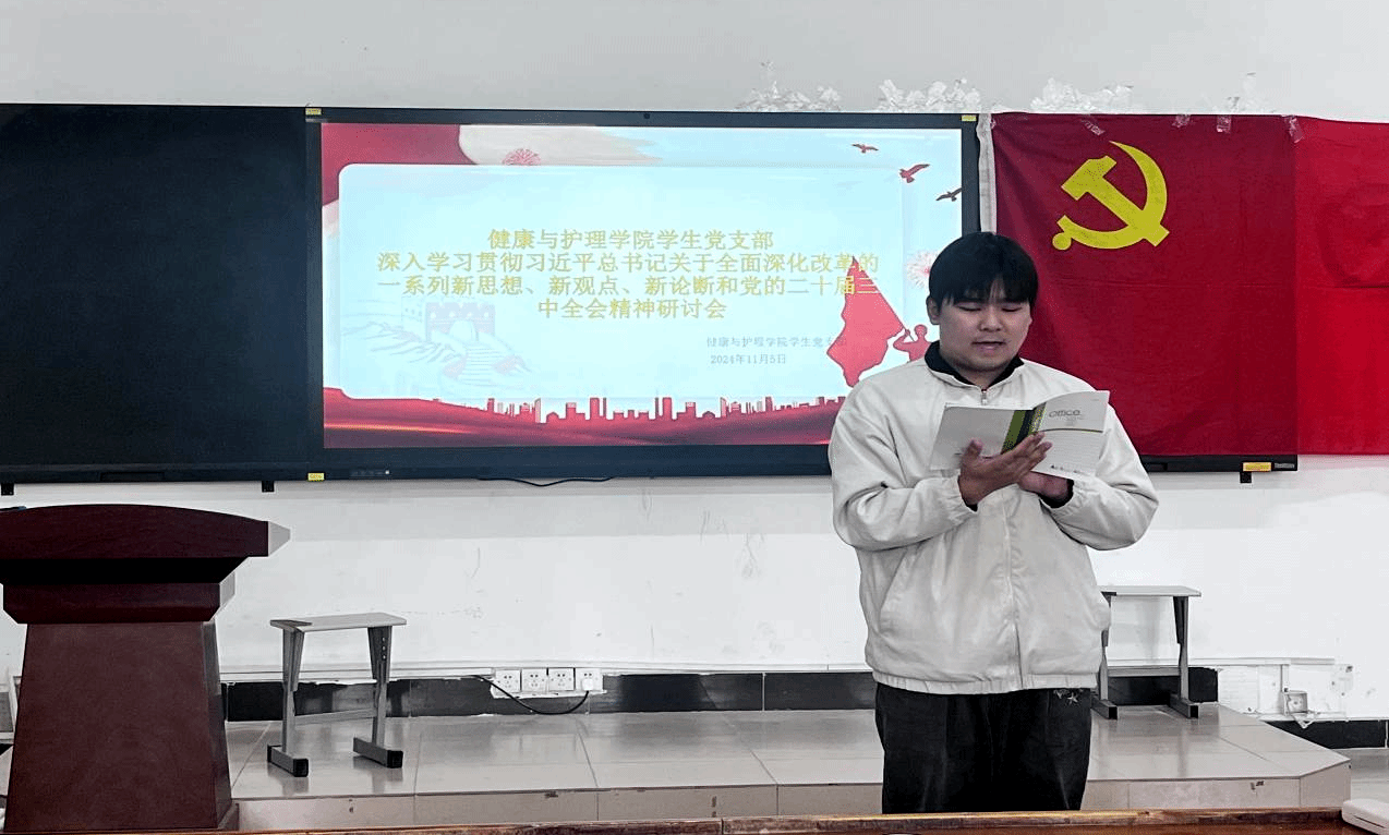 在新时代的浩荡春风中,2138CC太阳集团学生党支部积极响应党的号召,于2024年11月5日,在护院101教室成功举办主题为“激发昂扬斗志,凝聚青春力量”的党员培训课程。此次党课聚焦于深入学习贯彻习近平总书记关于全面深化改革的一系列新思想、新观点、新论断,以及党的二十届三中全会精神,旨在引导广大党员同志以更加饱满的热情和坚定的信念,投身到全面深化改革的伟大实践中。