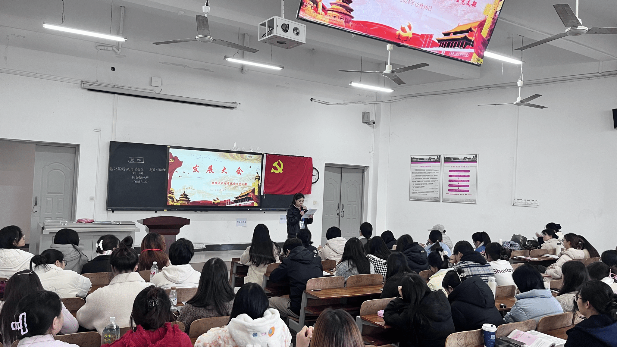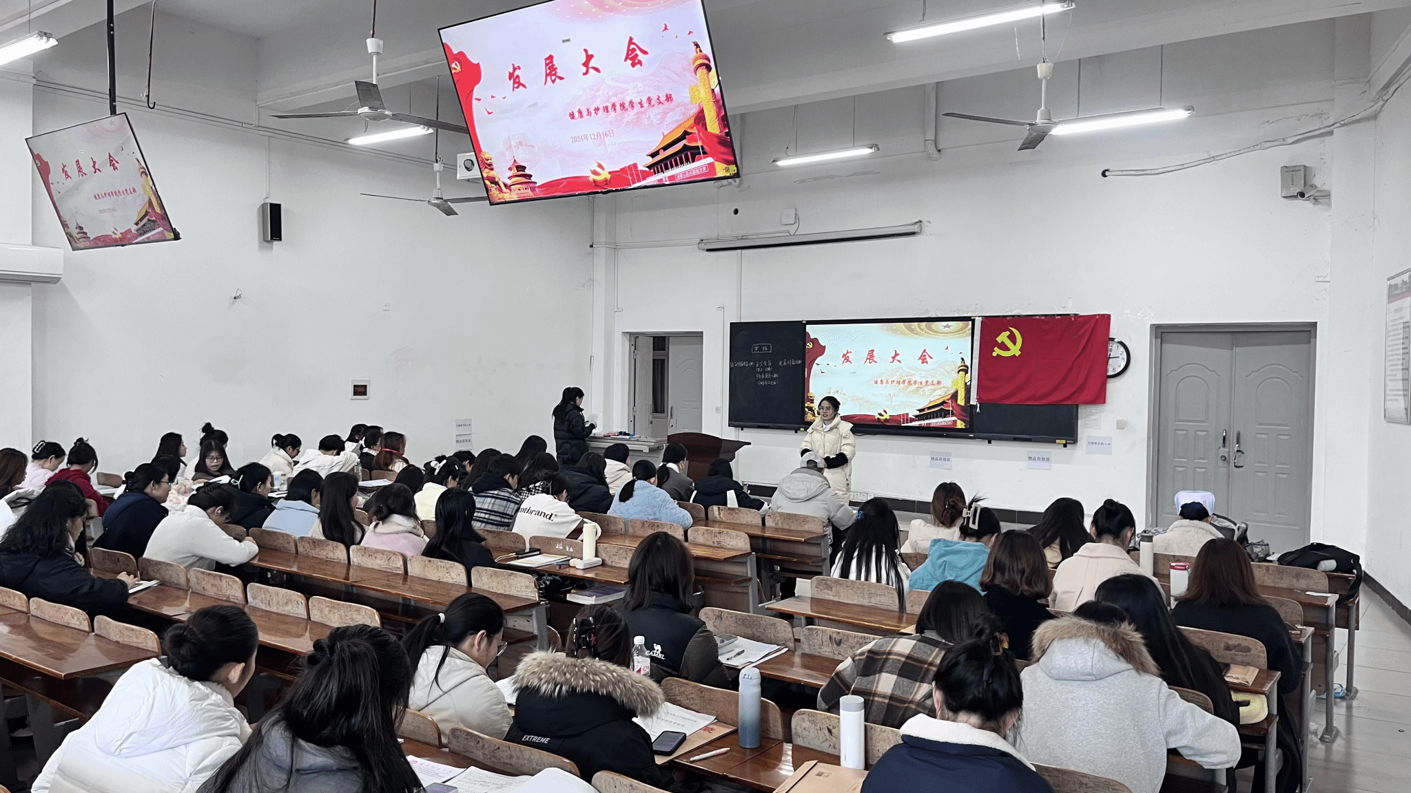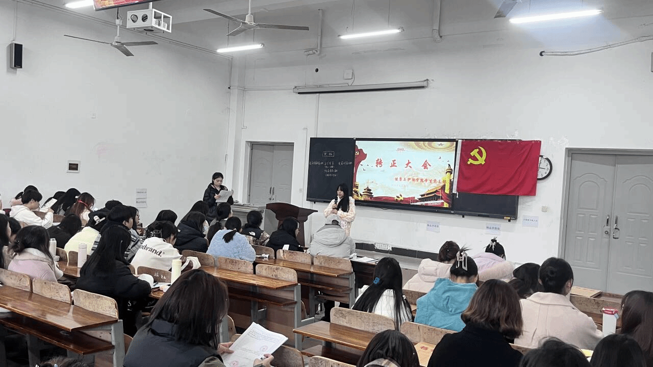 此次活动由学生党支部副书记徐惠同志主持,活动伊始,会议开始先是召开预备党员转正大会,预备党员们逐一汇报在过去一年中思想、学习、工作以及生活等各方面的感悟、收获等情况,并由入党介绍人汇报培养考察情况并进行表态,再由党员对预备党员同志是否符合转正条件进行投票。大会认为,11名同志基本符合转正条件,经与会正式党员投票表决,大会一致同意南天、占思玉、吴锦、柯梦灿、朱程莉、罗亚虹、叶子怡、欧阳天、刘峥、汪语鑫、王紫怡这11名同志转为中共正式党员。