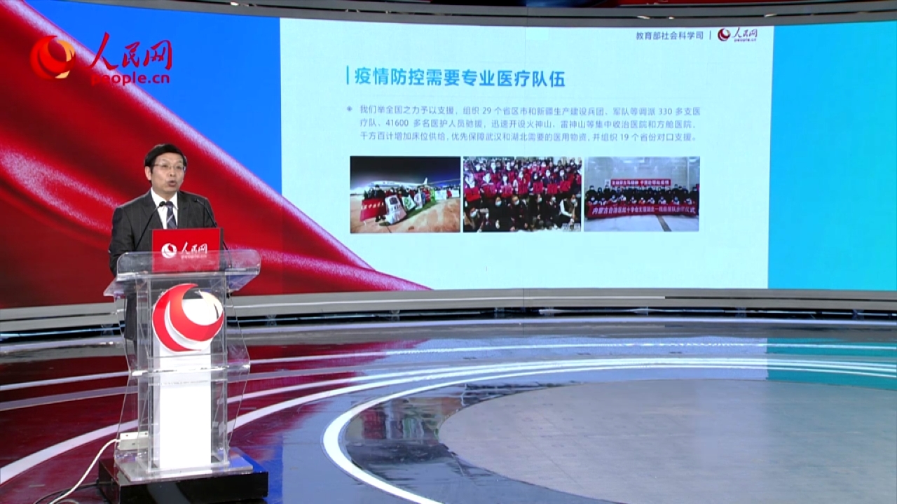 据了解,本次活动特别邀请清华大学艾四林、中国人民大学秦宣、北京师范大学王炳林、中央财经大学冯秀军四位教授,结合“马克思主义基本原理概论”“毛泽东思想和中国特色社会主义理论体系概论”“中国近现代史纲要”“思想道德修养与法律基础”四门必修课教学内容。紧接着,艾四林教授从在抗击疫情斗争中,深化理论认识,解读党中央关于疫情防控的决策部署;秦宣教授从疫情大考告诉我们什么?分析中国抗疫彰显的中国共产党领导和中国特色社会主义制度的显著优势;王炳林教授总结历史经验,增强必胜信心,分享从磨难中奋起、化危机为转机的历史经验和智慧;冯秀军教授从战“疫”里的最美青春,谈中国青年的责任与担当。进行全面讲解,讲述防疫抗疫一线一个又一个的感人故事。发挥高校思课落实立德树人根本任务的关键课程作用,引导大学生传承和弘扬爱国主义精神。