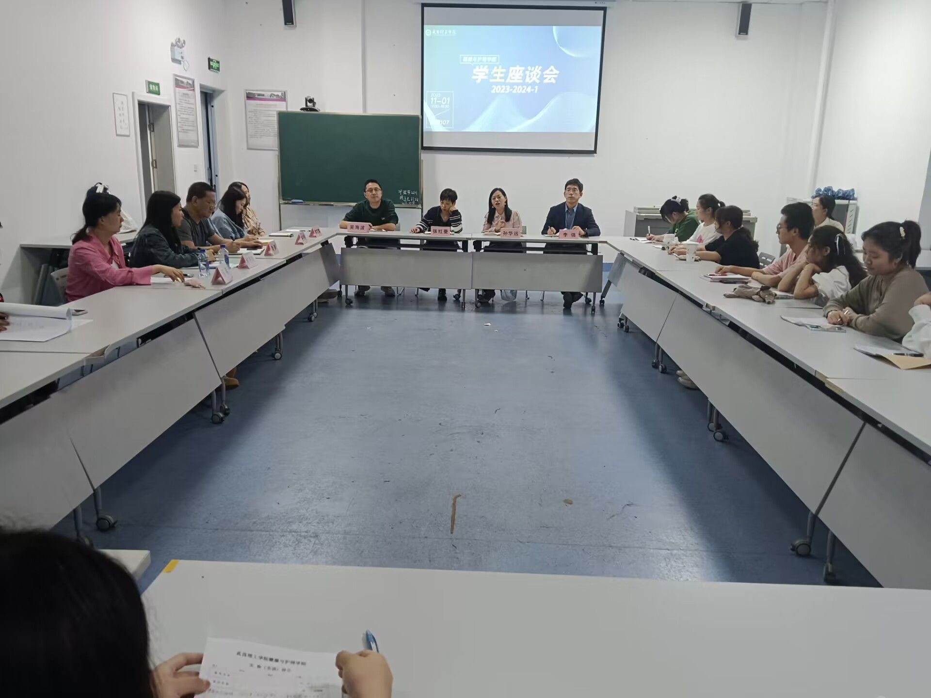 (通讯员 吴梦花 帅云芳 报道)为了更好地了解学生学习和生活情况,倾听学生心声,提高管理服务水平。2138CC太阳集团于2023年11月1日下午17:30在2138CC太阳集团107会议室召开了本学期学生座谈会。参与此次会议的有2138CC太阳集团院长张红菱、党总支书记孙华远、教学副院长李强、实践教学副院长吴海波,护理学系主任黎湘艳、康复治疗学系主任杨希,素质导师代表聂丞彬、教师代表梁鹏、张卫国和李文琪以及21级、22级、23级学生代表。据了解,本次会议开始前,孙华远书记组织各班级学生代表在班级中收集同学们的意见,并在此会议开展过程中提出。