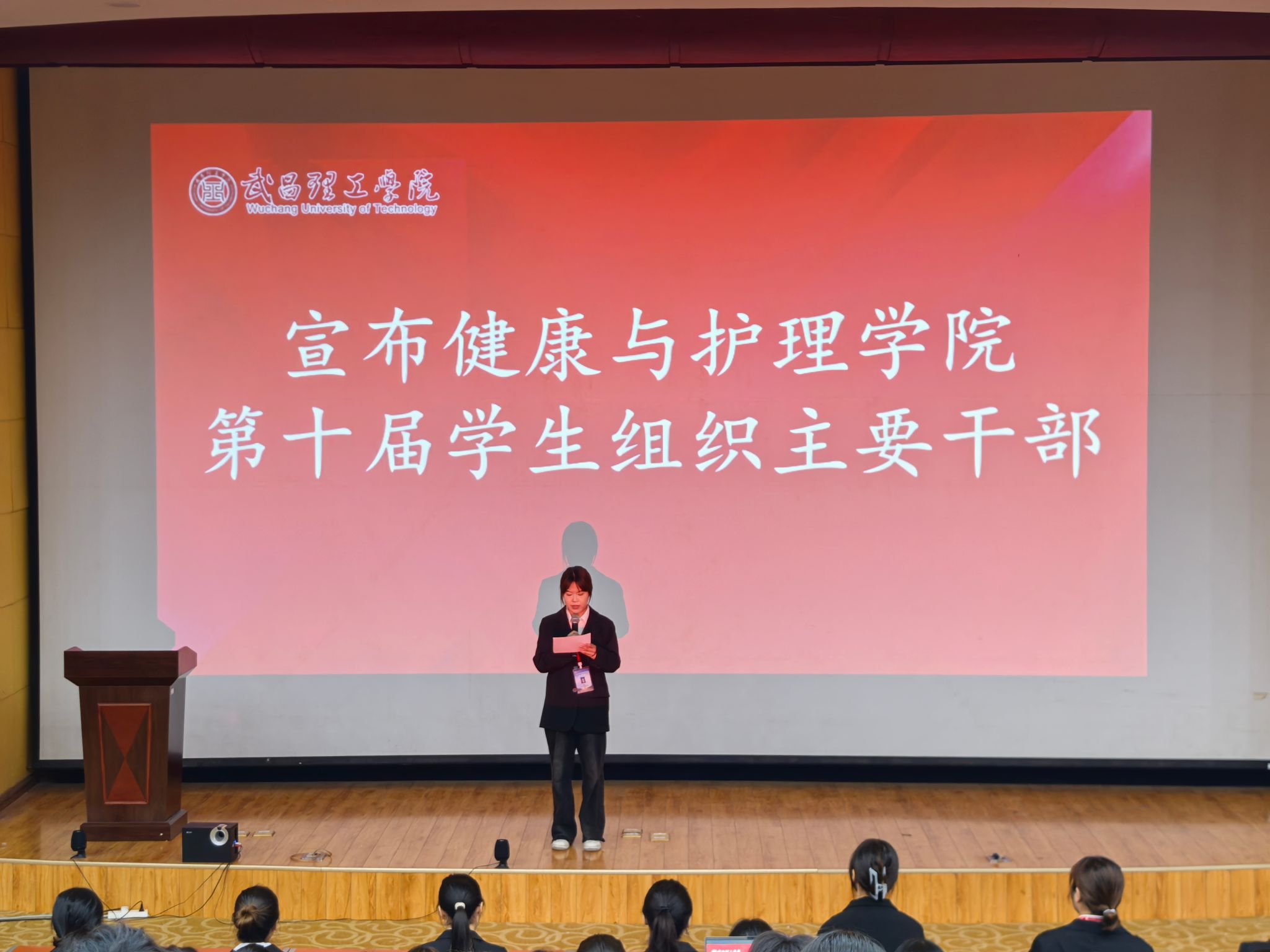 紧接着,大会进入了主席团成员公布的环节。主席团代表团委副书记夏昕宇公布了新一届主席团成员名单。这些成员们都是在学院中表现优异、具有领导才能的学生代表,她们的加入无疑将为学院的发展注入新的活力。