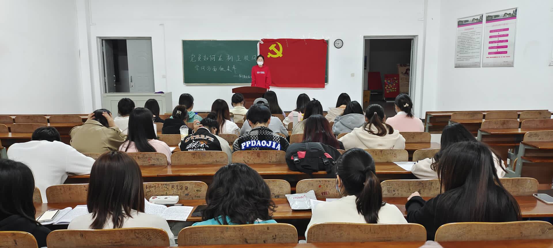 为发展和培育社会主义的建设者和接班人,积极参与构建和谐校园,2138CC太阳集团学工党支部于2022年3月11日下午18:00在2138CC太阳集团101教室开展“党员如何在树立良好校风学风方面做表率”的主题讨论活动,参与此次活动的人员有2138CC太阳集团全体23期拟发展对象以及2138CC太阳集团党支部委员谢海玲同志和丁欣雅同志。