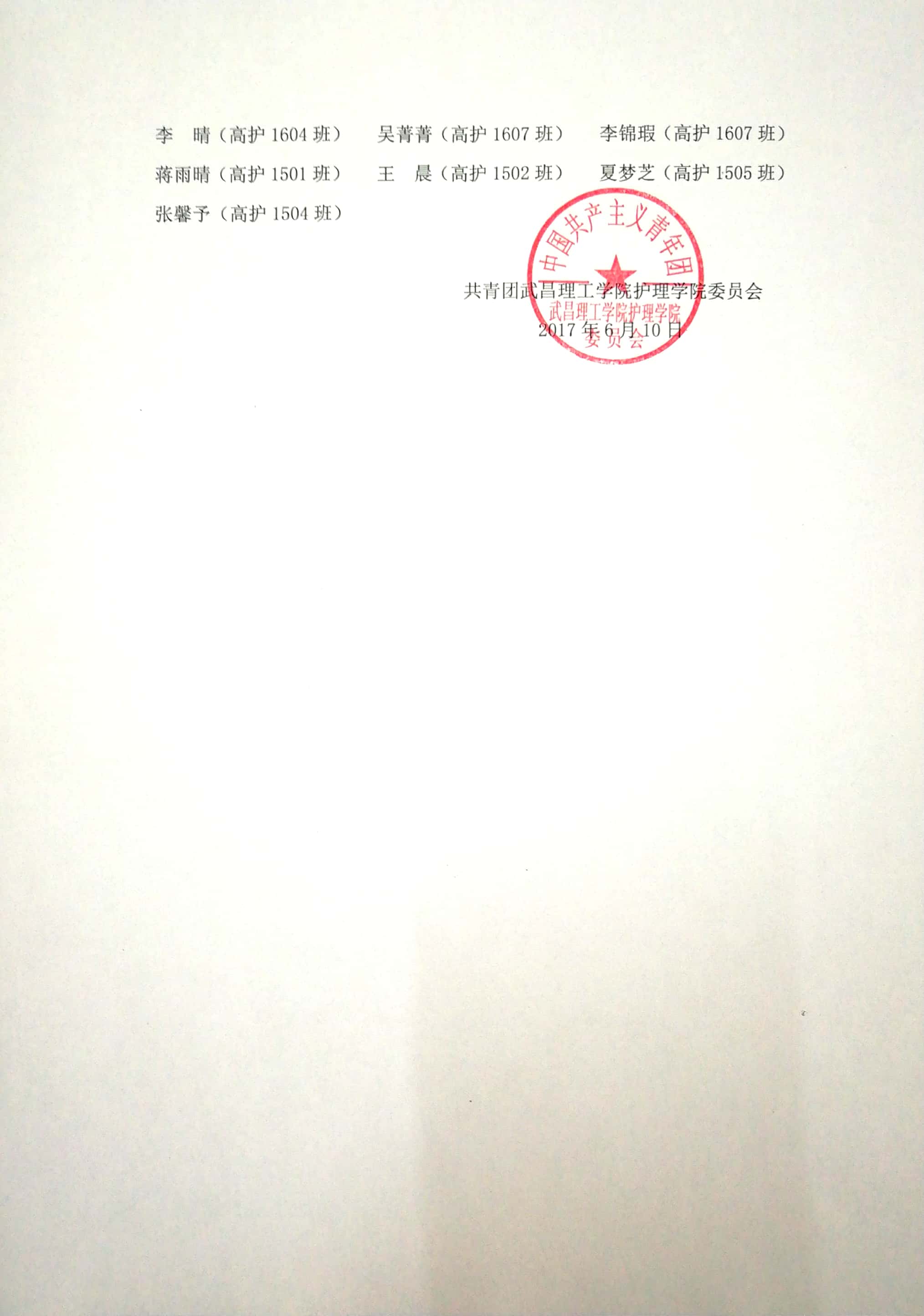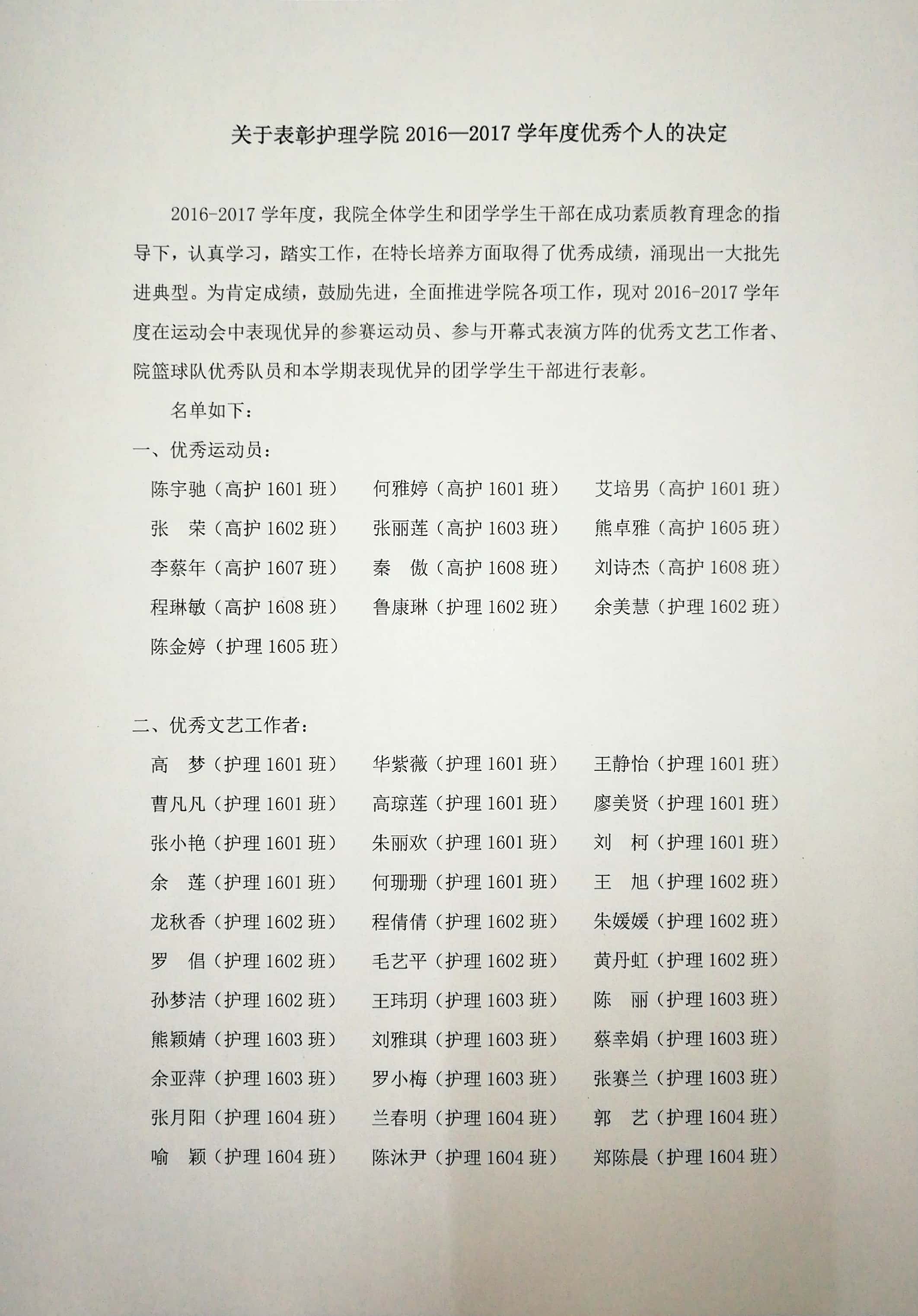 关于表彰护理学院2016—2017学年度优秀个人的决定