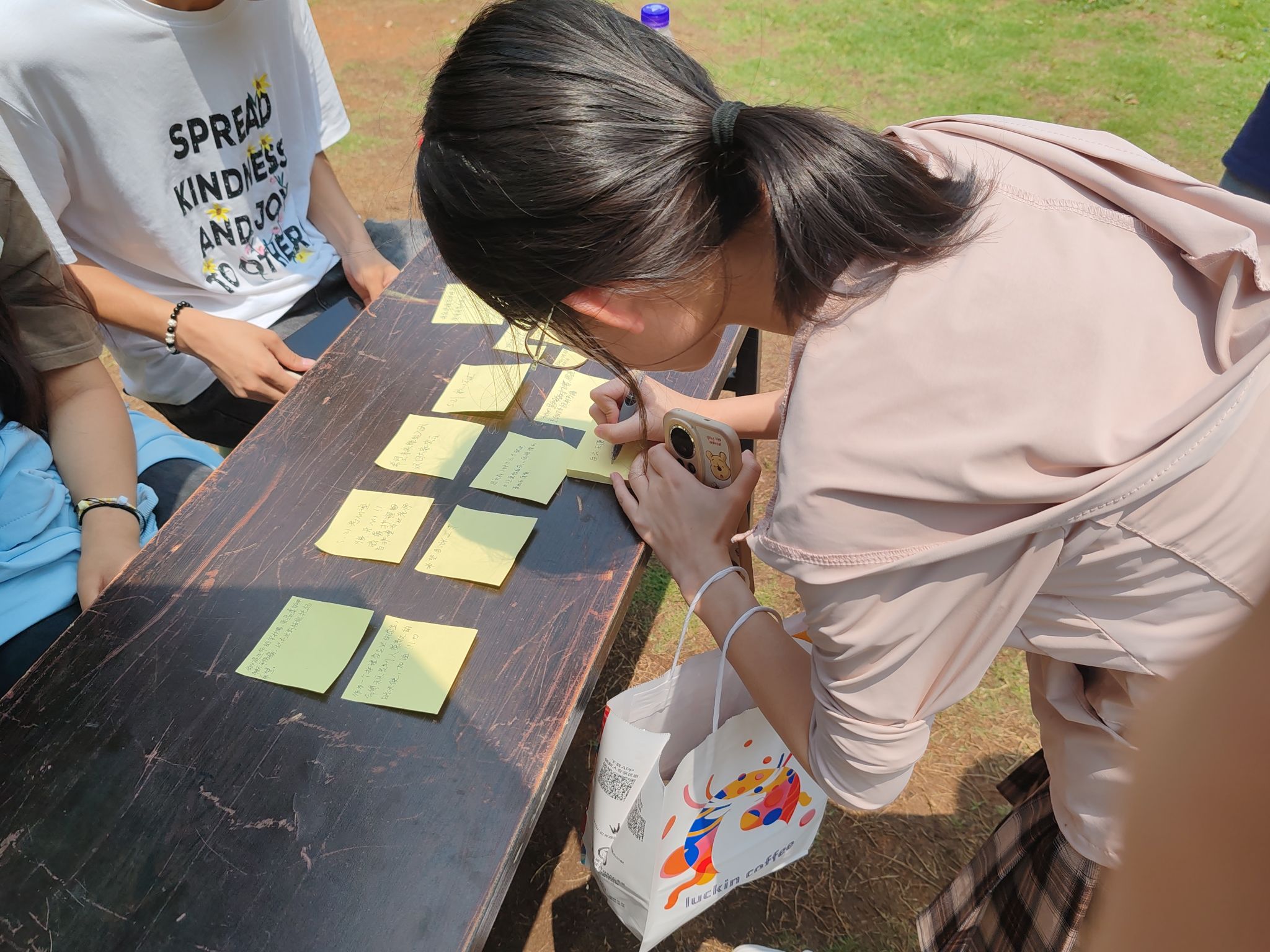 紧接着,“爱的便利贴”小游戏展开。同学们在指定区域领取便利贴和笔,纷纷在便利贴上写下对护士的赞美、对护理岗位的愿景等内容,完成后粘贴在展示板上,并相互观看交流。这一环节增进了同学们对护理职业的情感认同,为未来的护理从业者提供了情感支持,契合“青韵守护计划”中关注学生职业情感培育的核心内容 。现场轻松有趣的氛围,让同学们沉浸其中,尽情表达。