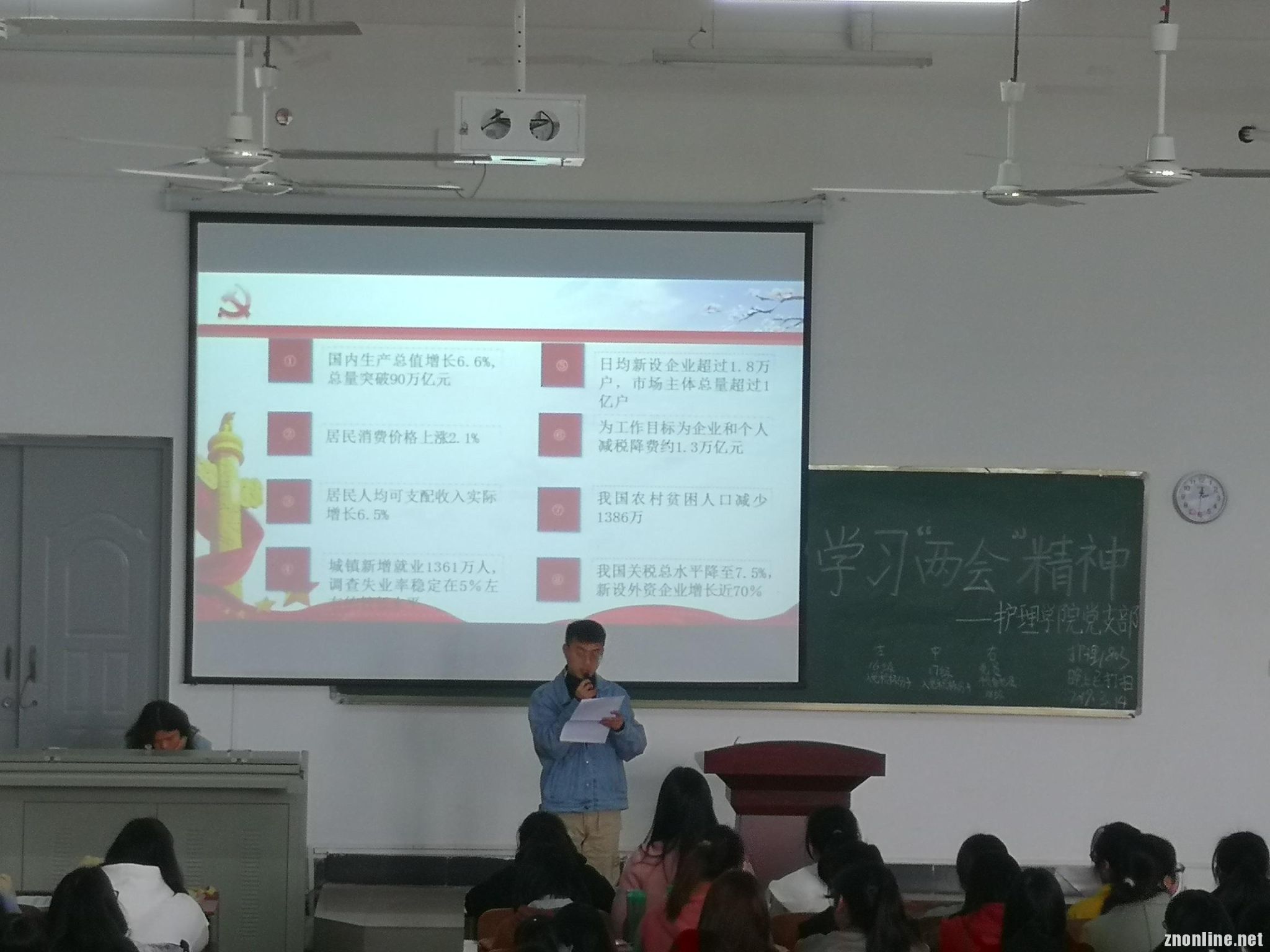 3月15日中午,2138cc太阳集团护理学院学工党支部在护理101教室开展了以“学习两会精神 ”为主题的党日活动,全体党员、预备党员、发展对象和入党积极分子参加。