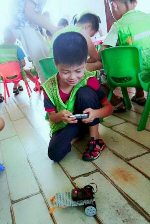 达内教育好小子机器人胡青杨老师跟孩子们讲述了生活中的各种各样的机器人以及控制机器人的原理方法,“用途决定机器人的模样。”他说,“其实生活中像语音输入、遥控器等都是机器人”。随后,胡老师拿出一组拼装零件教小朋友们如何组装机器人车,要求小朋友们小组协作完成。志愿者老师帮忙分发拼装零件给小朋友们。早就急不可耐地孩子们一拿到零件就开始分工拼装。现场气氛活跃,紧张有序。在老师们的协助下孩子们的机器人车不一会儿就都拼装好了,老师检查过后,给孩子们遥控器试玩自己的作品。“真好玩,老师,以后等我长大了,我想要做个超级超级机器人车送给你!”留守儿童袁子翔这么对志愿老师黄立佳说。