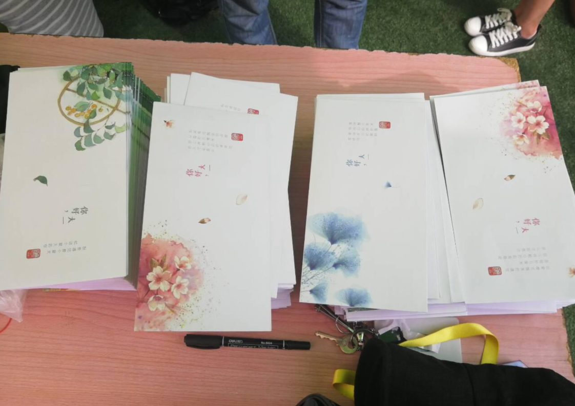 早在大一新生来之前,学长学姐就为各位小学妹,小学弟们准备好了对他们的寄语,希望自己的经验可以帮助到新生们,在迷茫的时候点醒他们,为他们指点迷津,为他们带来温暖。明信片上成功案例,失败分析及诚心祝福随机发给现场的新生,新生们围到学姐周围领取信封,拆开信封的瞬间,他们有那么一种见字如面感觉,温暖细腻,别致感动皆在他们入眼的瞬间,和学姐学长们未曾谋面,却因为这一个明信片有了联系。