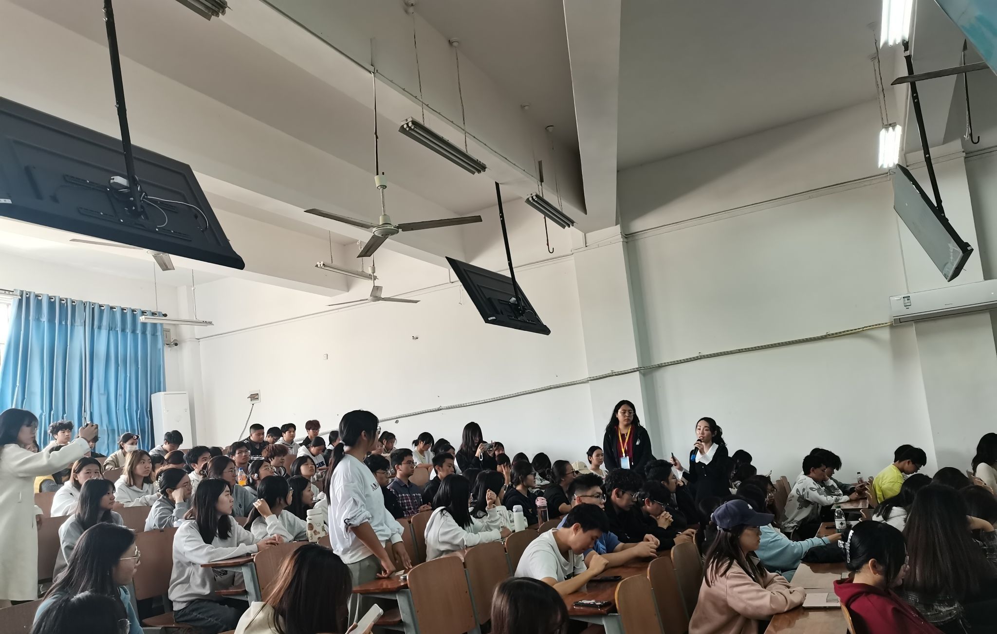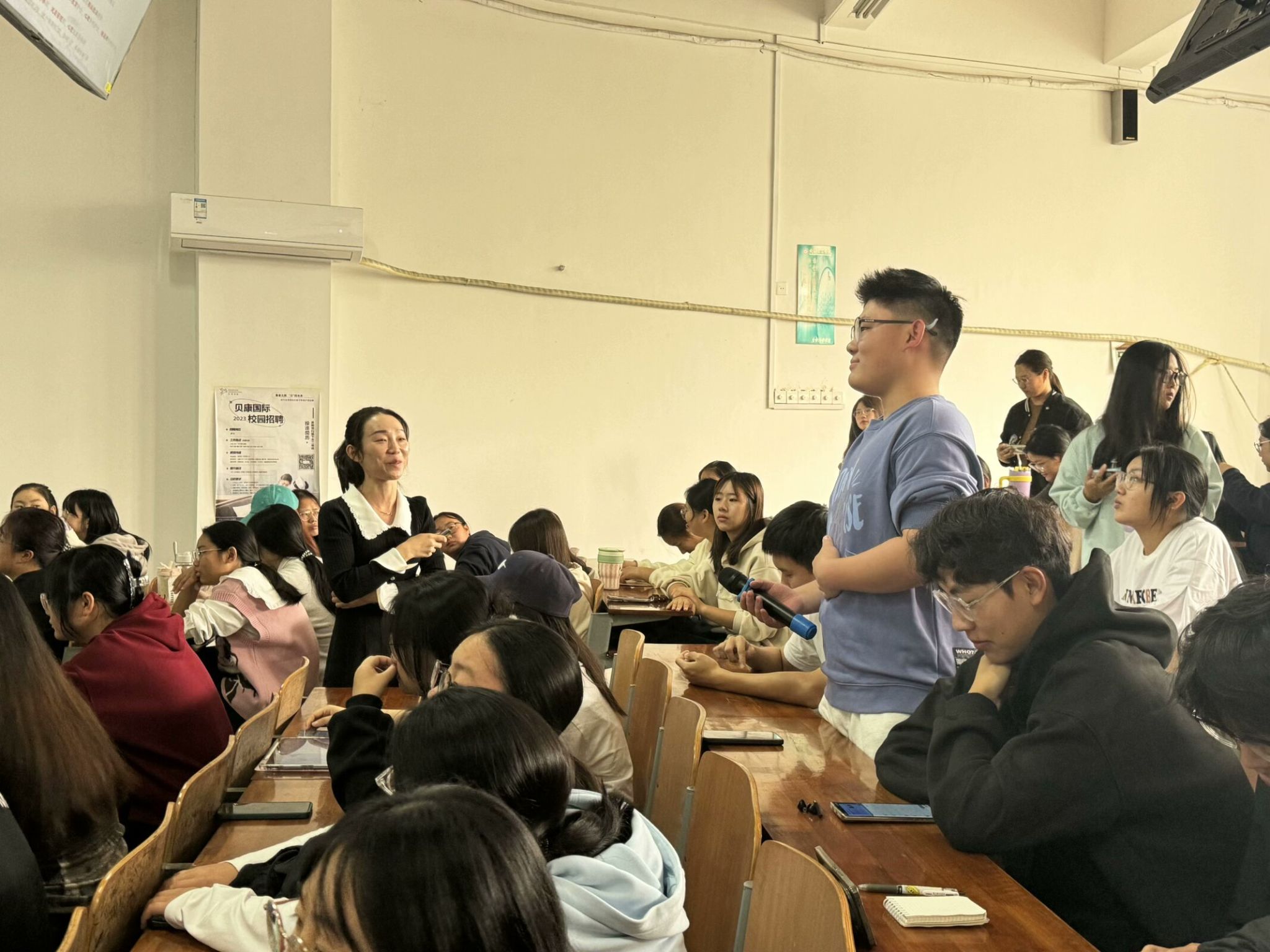 讲座之后的互动环节,同学们踊跃向李宗璟请教,护理学2401班的何子睿同学提问到男护士的就业前景如何,她回答到:“在我那个年代,两个本科班一共就只有一个男护士,现在大不一样了,在我们医院一个科室都能有2到4个男护士,随着医学技术的发展和观念的转变,男护士有更多的优势更受欢迎,所以目前医院对于男护士的需求还是挺大的。”同学们还问到有关考研、参加竞赛、考其他证书方面的问题,李宗璟都耐心地一一回答。
