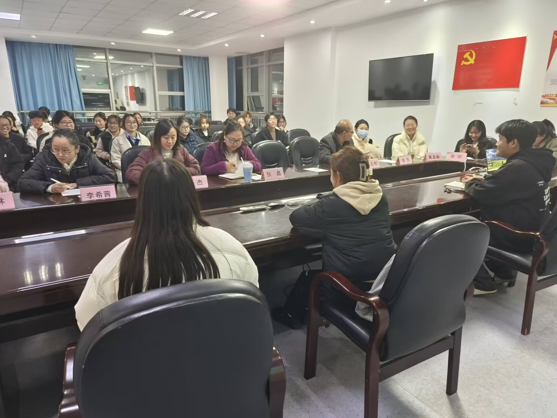 会议伊始,主持人介绍了此次座谈会的主题与流程,学院领导随后发表讲话,强调了此次调研对学院发展和学生成长的深远意义,表达了学院积极倾听学生声音、提升教育服务水平的决心。在学生代表自由发言环节,讨论气氛热烈。在个人背景与学业投入方面,学生们对本学年学习状况进行了全面回顾。在个人成长方面,学生们总结了在校期间在专业技能、人际交往等方面的收获,并对学校促进个人成长的工作给予了客观评价。最后,学生们对学校整体满意度进行了评价,并对学校未来发展提出了殷切期望。