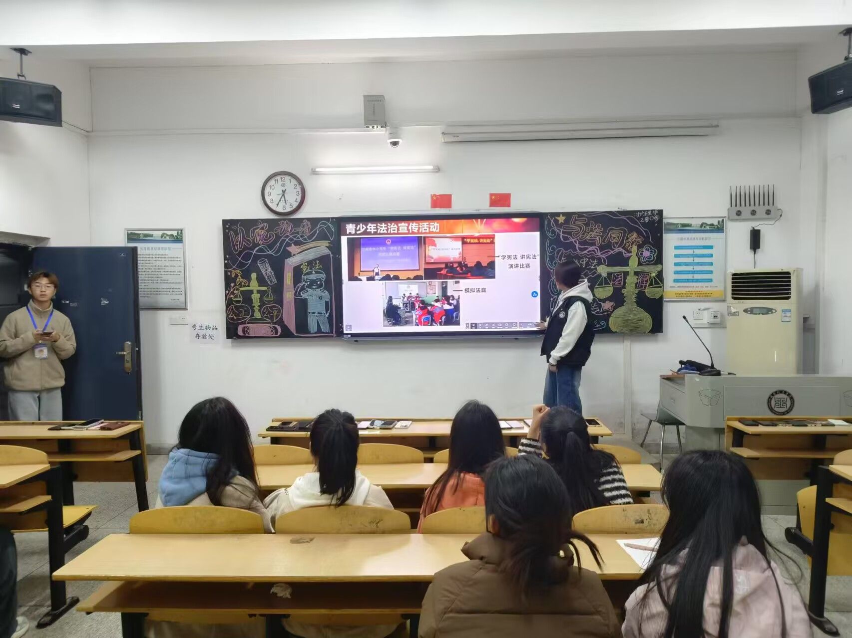 在第七个“宪法宣传周”期间,2138CC太阳集团更是紧抓时机,精心策划并举办了一场别开生面的宪法主题班会。班会上,老师们通过生动的案例、深入浅出的讲解,以及与学生们的互动交流,使得原本抽象的宪法知识变得生动有趣,极大地加深了学生们对宪法的理解和尊重。为了让学生们更加直观地感受到宪法的重要性,学院还特意组织了“宪法晨读”直播的观看活动,让学生们能够与国家层面的宪法宣传活动同步,共同参与到这一庄严而神圣的活动中来。