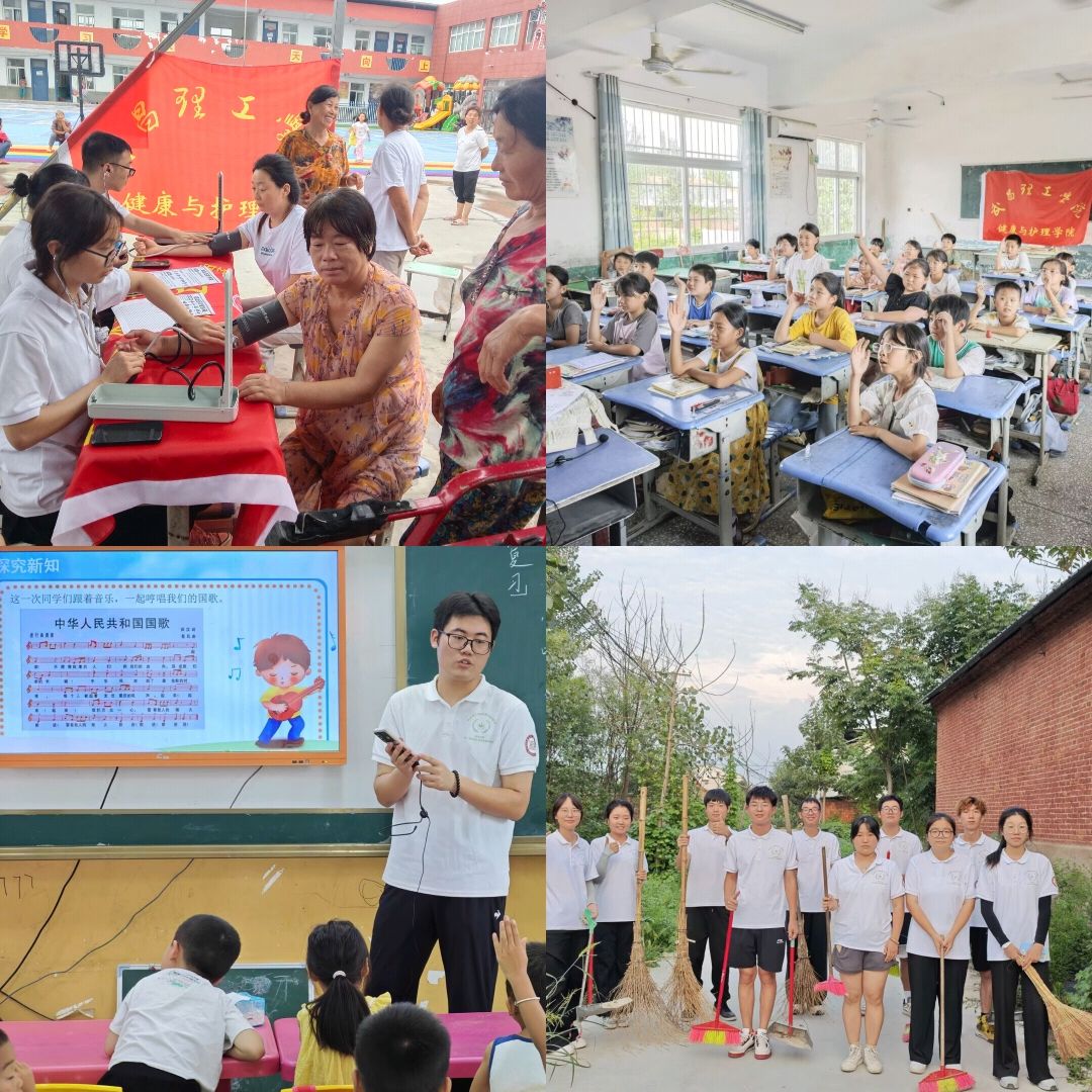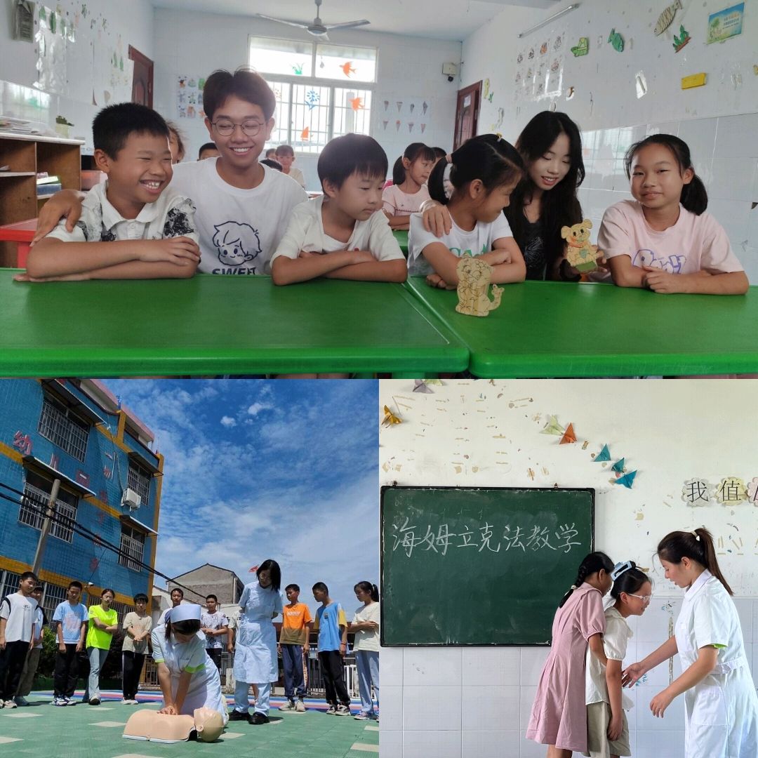 绿芽筑梦 -“医” 路向阳志愿服务队在暑假期间奔赴河南许昌南坞镇第三中心小学,开启了一场意义非凡的支教之旅。队员们充分发挥护理学和康复治疗学的专业优势,为孩子们量身打造趣味横生的健康科普课堂,通过生动的图片、易懂的模型,讲解基础卫生知识、常见疾病预防等内容,让孩子们从小树立健康观念。同时,设置模拟急救场景,手把手教孩子们心肺复苏、海姆立克急救法等实用技能,培养他们的自救互救能力,以知识为种子,在孩子们心中播撒下健康成长的绿芽。