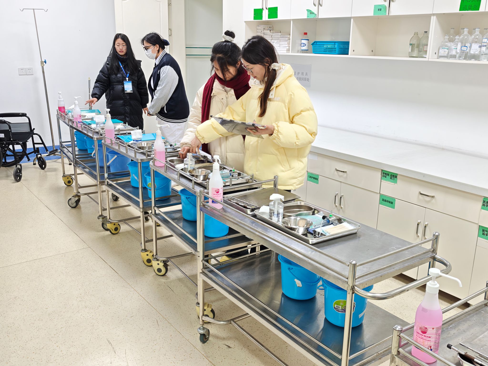 2025年03月17日下午13时,参与此次大赛的志愿者们早早集合,满怀热忱地迎接即将到来的挑战。在指导老师条理清晰的组织下,志愿者们迅速进入状态,明确各自肩负的职责。评委助手们仔细检查评分表格与相关资料,确保评分工具万无一失;考场调度员们手持引导牌,熟悉考场布局与入场、退场路线,反复演练流程;备物间工作人员则全身心投入,依照赛事需求,将各类医疗用品逐一清点、分类摆放,用一丝不苟的态度保障物资供应顺畅。