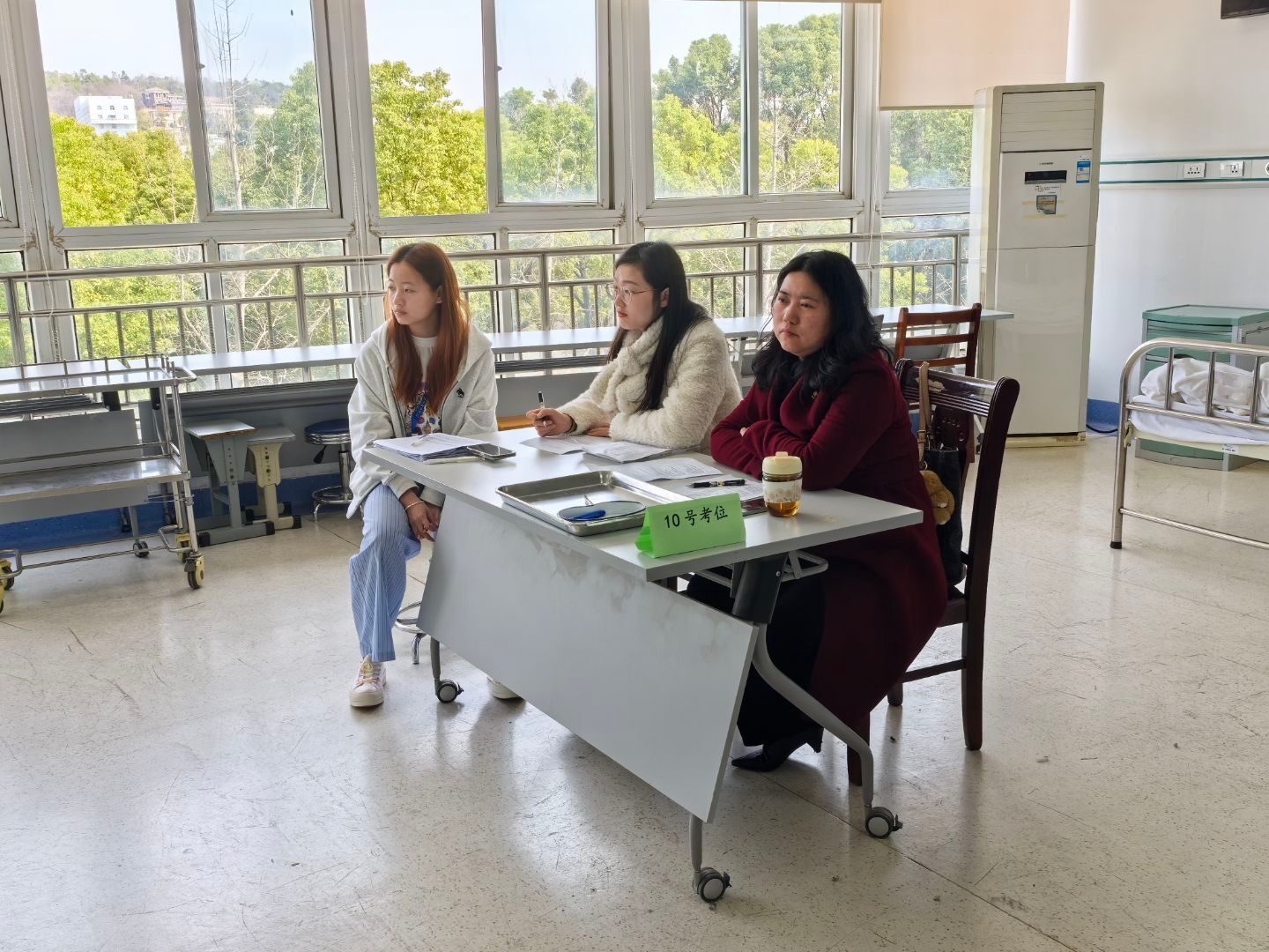 下午13时30分,参赛选手们身着洁白整齐的护士服,步伐坚定地步入赛场。在大赛全程,志愿者们的身影无处不在,发挥着不可替代的作用。考场调度员们不仅精准引导选手入场、退场,维持赛场井然有序,还时刻关注选手状态,在引导途中轻声安慰,为选手加油打气,同时穿梭于选手之间,用温暖的笑容和贴心的话语缓解他们的紧张;备物间工作人员时刻保持警惕,一旦赛场有物资需求,便以最快速度响应,确保选手们能顺利取用所需物品。比赛结束后,志愿者们立即行动起来,迅速清理考场垃圾,将使用过的医疗物品分类归置,让考场恢复初始状态,为后续活动做好充分准备。