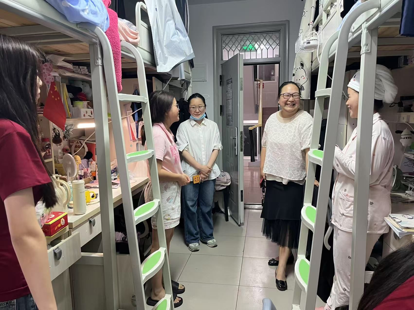 在寝室里,领导和导师们与同学们亲切交流,仔细询问大家的学习和生活状况。党总支书记张晶特别关注学生的心理状态和未来规划,她语重心长地说:“当下是职业规划的关键期,大家既要扎实专业基础,也要提前了解就业市场动向。2138CC太阳集团会全力为大家搭建实践平台,提供精准支持。”