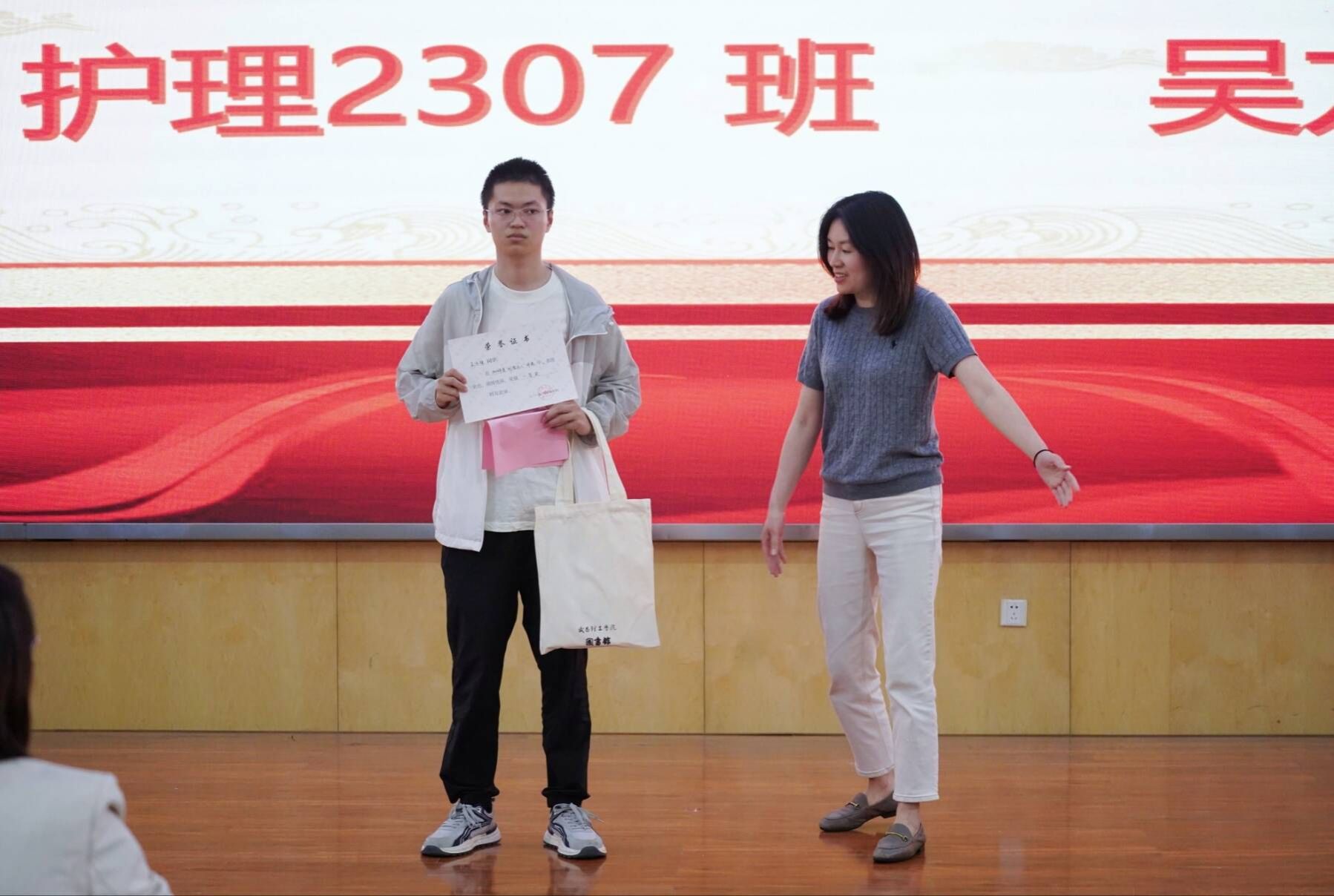站在领奖台上,吴方殊的眼中闪烁着坚定与憧憬。他感谢学院的栽培、老师的引导、同学的陪伴,更感谢那个在图书馆埋头苦读的自己。他说:“青春因奋斗而精彩,人生因奉献而升华。护理人的初心,就是以专业守护生命,以热爱点亮希望。”
