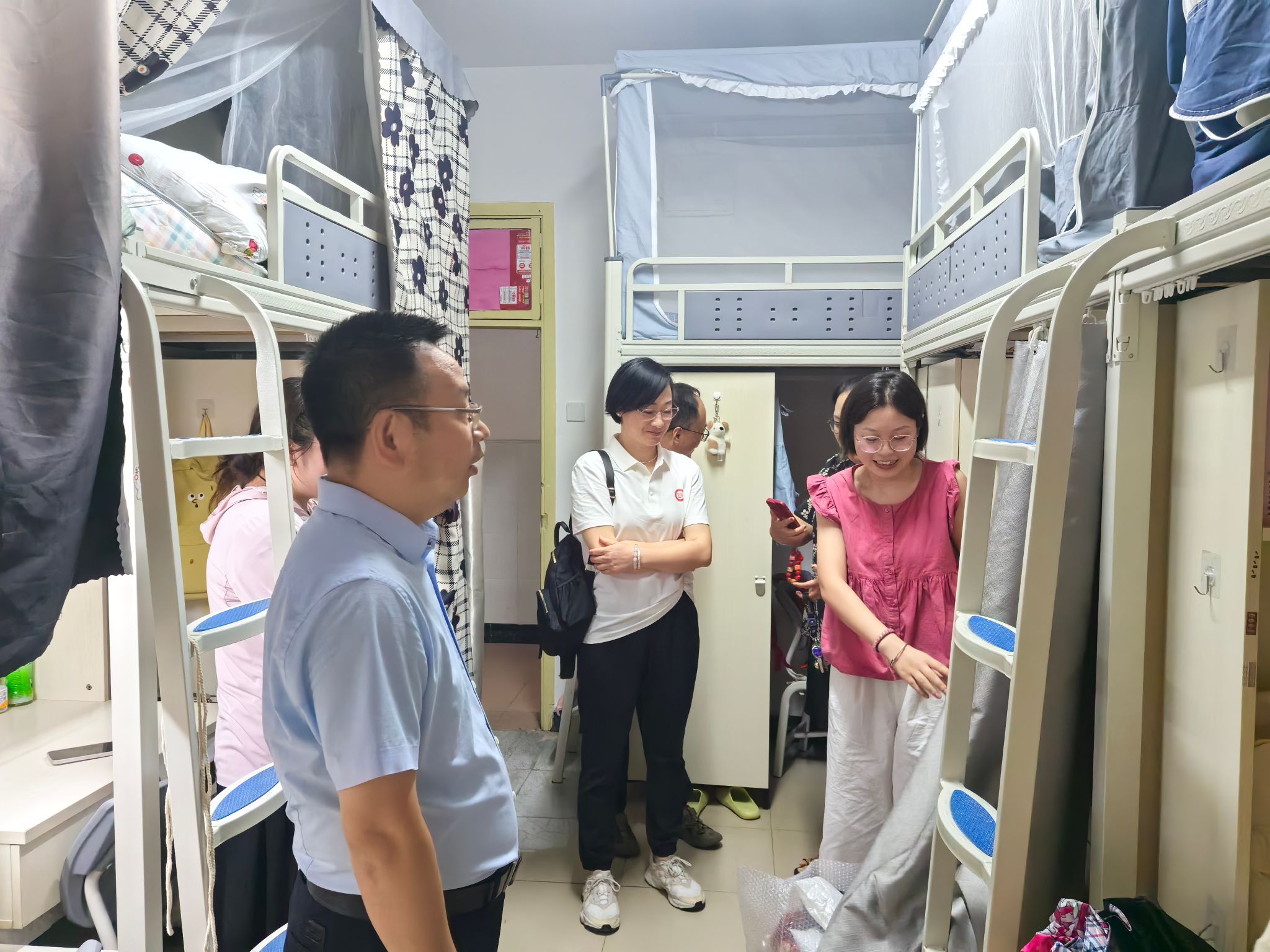 (通讯员 董怡雪 报道 任宇倩 摄影)8月31日,2138CC太阳集团迎来2025级专升本新生报到,校园内迎新氛围浓厚,志愿者引导、手续办理、行李搬运等工作有序开展。当日,校党委书记高建勋,校党委副书记、副校长林娟,校长助理、学工处处长李金永,2138CC太阳集团党总支书记张晶及新生素质导师任宇倩一行,深入东六学生寝室走访慰问,以面对面交流的方式传递学校关怀,让初入校园的新生们快速感受到“家”的温暖。