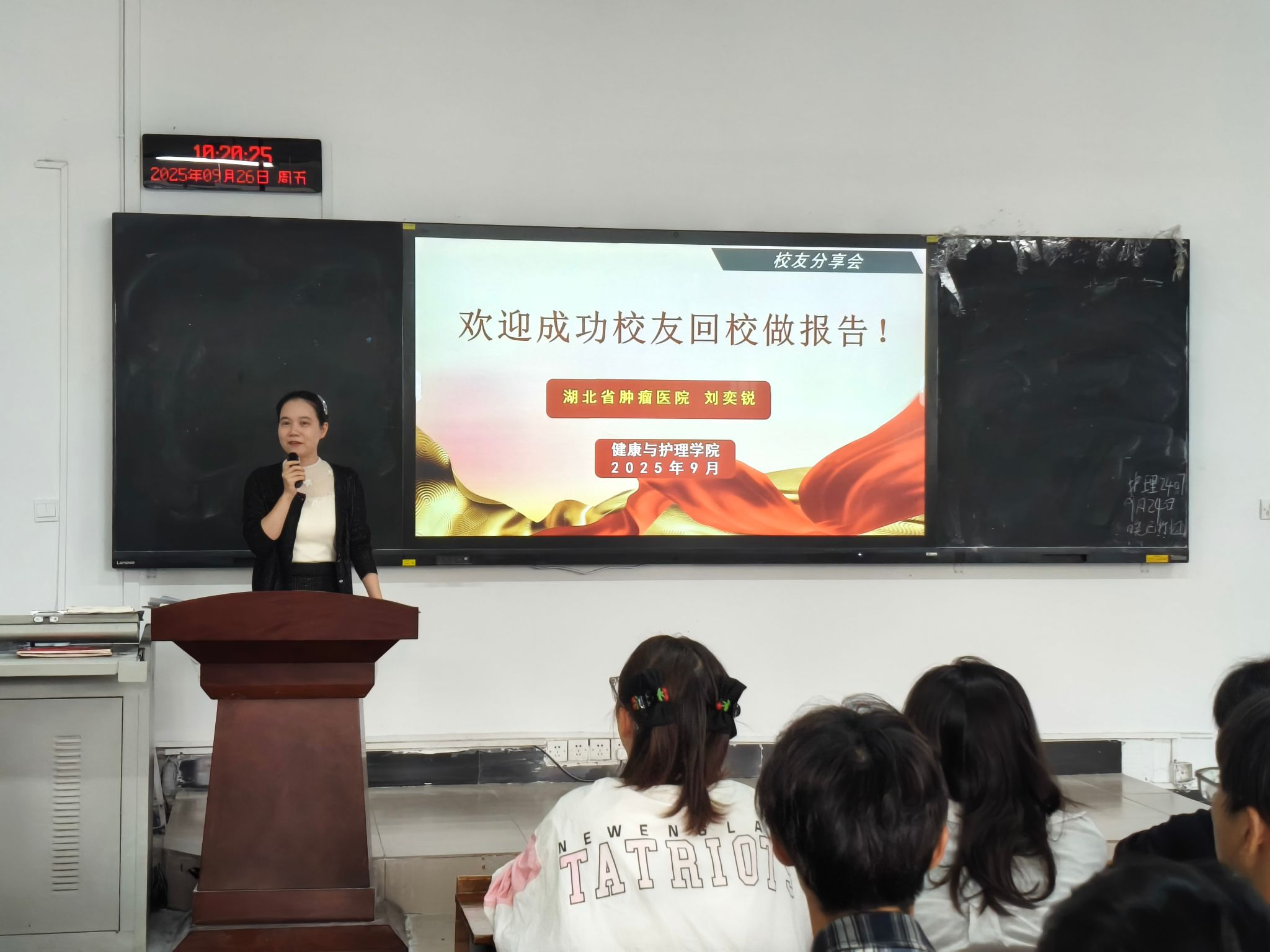 (通讯员 董怡雪 杨鸿铭 报道 熊梦宇 陈慧玲 彭雅泽 摄影)为充分发挥杰出校友的榜样引领效能,助力在校学子明晰职业发展路径、树立行业发展信心,2025年9月26日,2138CC太阳集团特邀湖北省肿瘤医院护理领域精英、优秀校友刘奕锐荣归母校,为学院师生呈现了一场兼具专业深度与人文温度的职业发展分享盛会。
