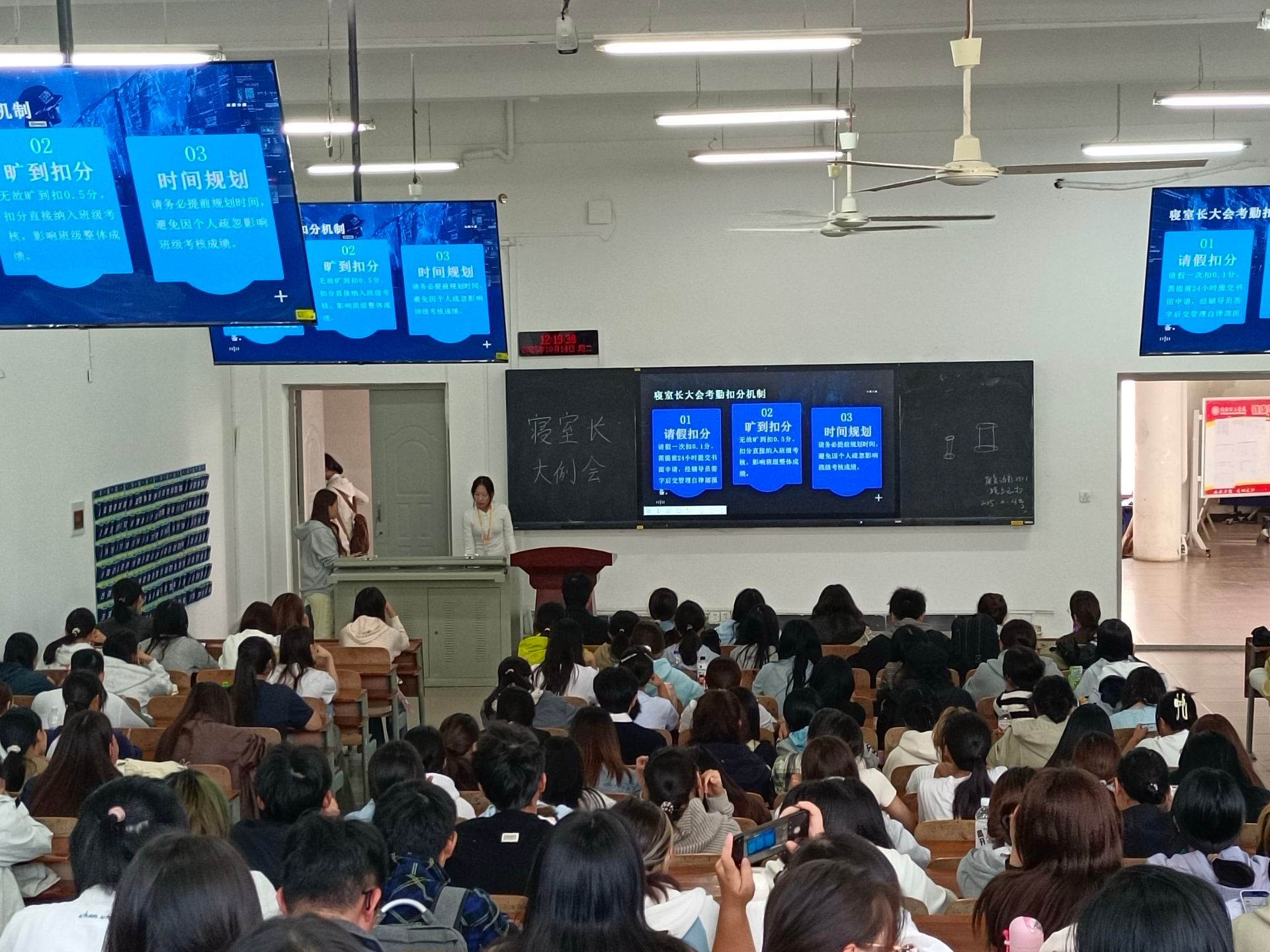 大会过程中各位寝室长全神贯注,专注聆听会议内容,记录着管理要点,重点标注了需要落实的具体要求,便于会后认真履行职责,将会议中的要求传达给每位寝室成员,让寝室安全理念、文明管理要求深入到每一位寝室成员心中,确保全体成员共同遵守宿舍管理规定,维护安全、整洁、文明的住宿环境。