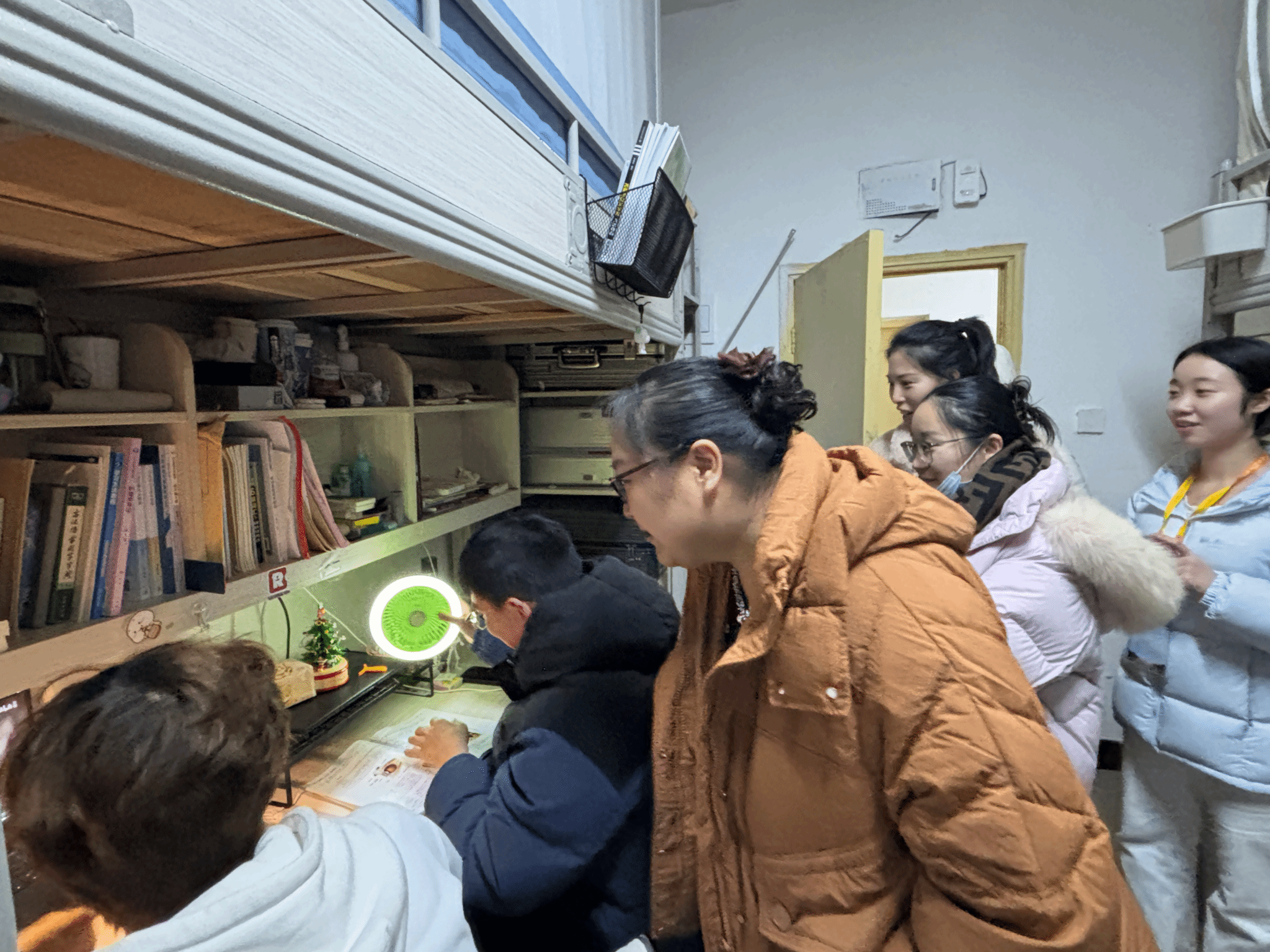 (通讯员 毛玉婷 报道 白秦娴 张好 摄影)为切实了解学生的学习生活状况,倾听学生心声,传递2138CC太阳集团的关怀与温暖,12月24日2138CC太阳集团党总支书记张晶及全体素质导师一同深入学生寝室开展走访慰问活动,与同学们面对面交流,送去真切关怀。