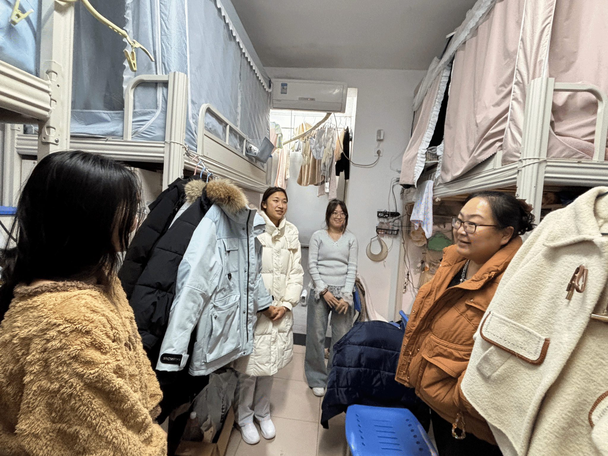 走访过程中,领导老师们每到一间寝室,都与同学们亲切交谈,详细询问大家的住宿环境、饮食起居、学业进度以及课余生活情况。在与同学们的交流中,学院领导认真倾听大家在学习生活中遇到的困难和问题,针对专业学习规划、校园活动参与、未来职业发展等方面为同学们提供了切实可行的建议。同时,叮嘱同学们要合理安排作息时间,养成良好的生活习惯,在努力学习的同时,也要加强体育锻炼,保持身心健康。