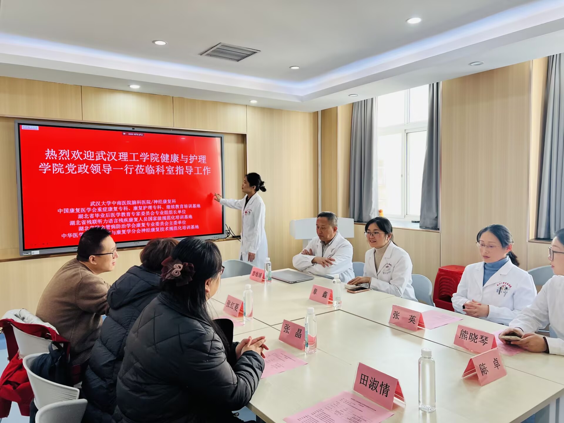 座谈伊始,武汉大学中南医院神经康复科主任章鑫等专家团队对学院一行的到来表示热烈欢迎,并详细介绍了科室的学科建设、临床诊疗特色、人才需求及实习带教体系,重点阐述了对康复专业复合型、实践型人才的培养期待。张红菱院长代表学院介绍了2138CC太阳集团康复专业的设置、教学成果及“以岗位需求为导向,以实践能力为核心”的育人理念,强调学院始终注重将临床实践融入教学全过程,致力于培养适配行业发展的高素质康复专业人才。田淑情老师作为康复专业教师代表,就专业课程设置、实践教学环节设计等与科室专家进行了深入交流,双方围绕康复专业学生的临床技能培养、实习岗位适配、职业素养提升等核心问题展开热烈探讨。